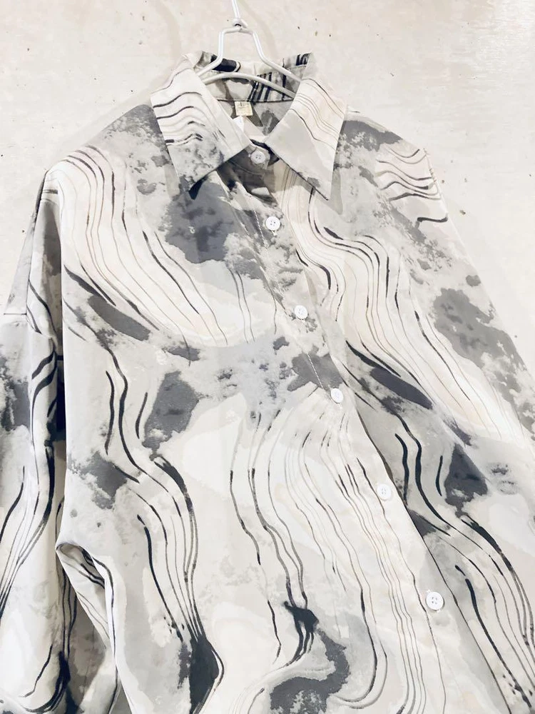 Ai MOON Marble Pattern Oversize Shirt L New Gray Black White Key Features - Brand: Ai MOON - Product Type: Sheer Blouse - Model: SEIKOUSHOUJI - Features: - Size: L (Approximate measurements: Shoulder width 62cm, Bust 59cm, Arm width 24cm, Sleeve length 51cm, Length 73cm) - Material: Polyester - Colors: Gray, Black, White, Ivory - Design: Marble pattern, art-inspired, all-over print - Fabric: Chiffon, sheer with a slight transparency, thin texture - Fit: Oversized with a drapey feel - Season: Suitable for all seasons - Button: Single button closure - Stretch: Yes - Condition: - New with tags - Stored in a home apartment Please note that measurements are approximate and may have slight variations. Specifications Brand No Brand Country Japan Color Multicolor Language japanese Product Description Item Title Marble Pattern Shirt See-Through Oversize L Payment Supports managed payments Please pay within 5 days after auction is finished. About Us We are located in Japan. It's our pleasure to make you happy by proposing our recommend item. If you have any questions or request about items, please feel free to ask us. International Buyers - Please Note: -Import duties, taxes, and charges are not included in the item price or shipping charges. These charges are the buyer's responsibility. -Please check with your country's customs office to determine what these additional costs will be prior to bidding/buying. -These charges are normally collected by the delivering freight (shipping) company or when you pick the item up - do not confuse them for additional shipping charges. -We do not mark merchandise values below value or mark items as - gifts - The US and International government regulations prohibit such behavior. Thank you for your understanding.