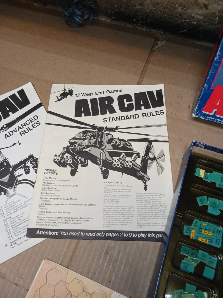 Air Cav Helicopter Warfare In The 80's West End Games Board Game 100% Complete. Condition is Used. Shipped with FedEx Ground Economy.