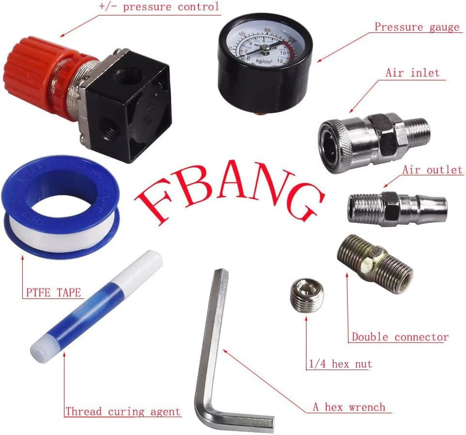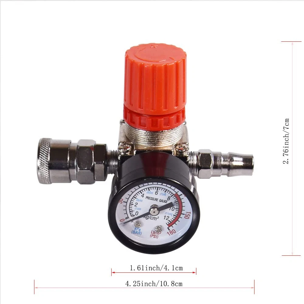 Air compressor pressure regulator with dial indicator, Four way valve : maximum voltage: 240 V; Maximum current: 15A; Maximum pressure: 175 PSI, 12 BAR. Materials and characteristics: plastic, alloy and copper. Easy to install and remove, with thread locking agent, better sealing Four way valve : maximum voltage: 240 V; Maximum current: 15A; Maximum pressure: 175 PSI, 12 BAR The data can be set and read using the barometer. With valve knob, you can adjust the atmospheric pressure as required. In use, it can help save electricity The air compressor pressure regulator is used to connect the air compressor or air pipe, regulate the air pressure Our air compressor regulator has a high cost performance ratio and is a pneumatic tool worth choosing for daily use of air compressors