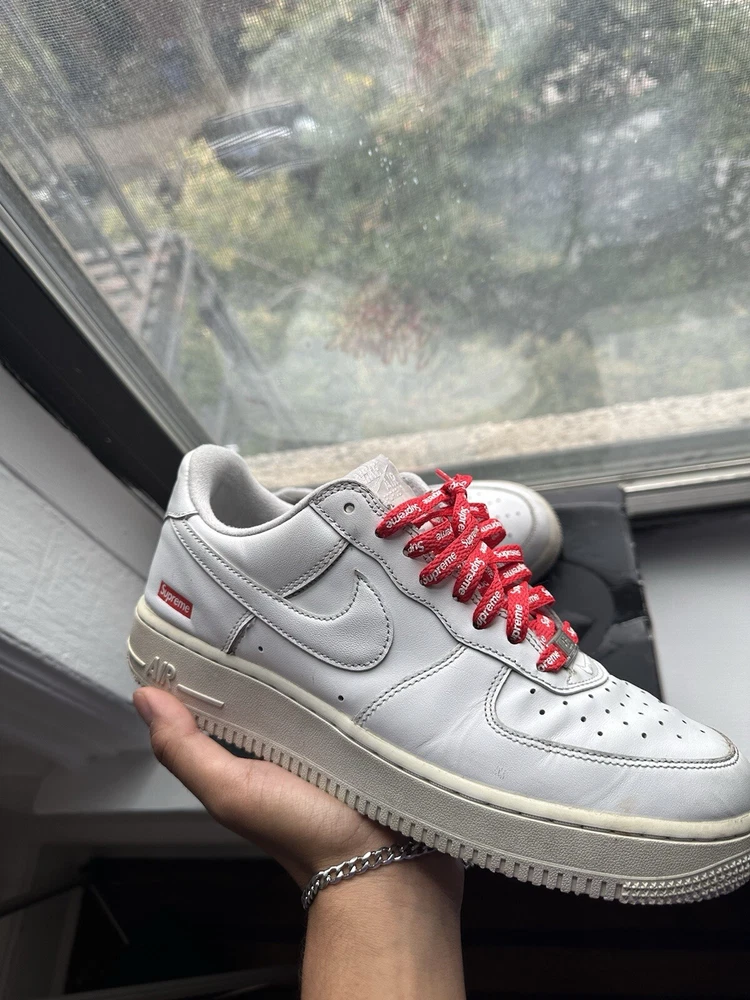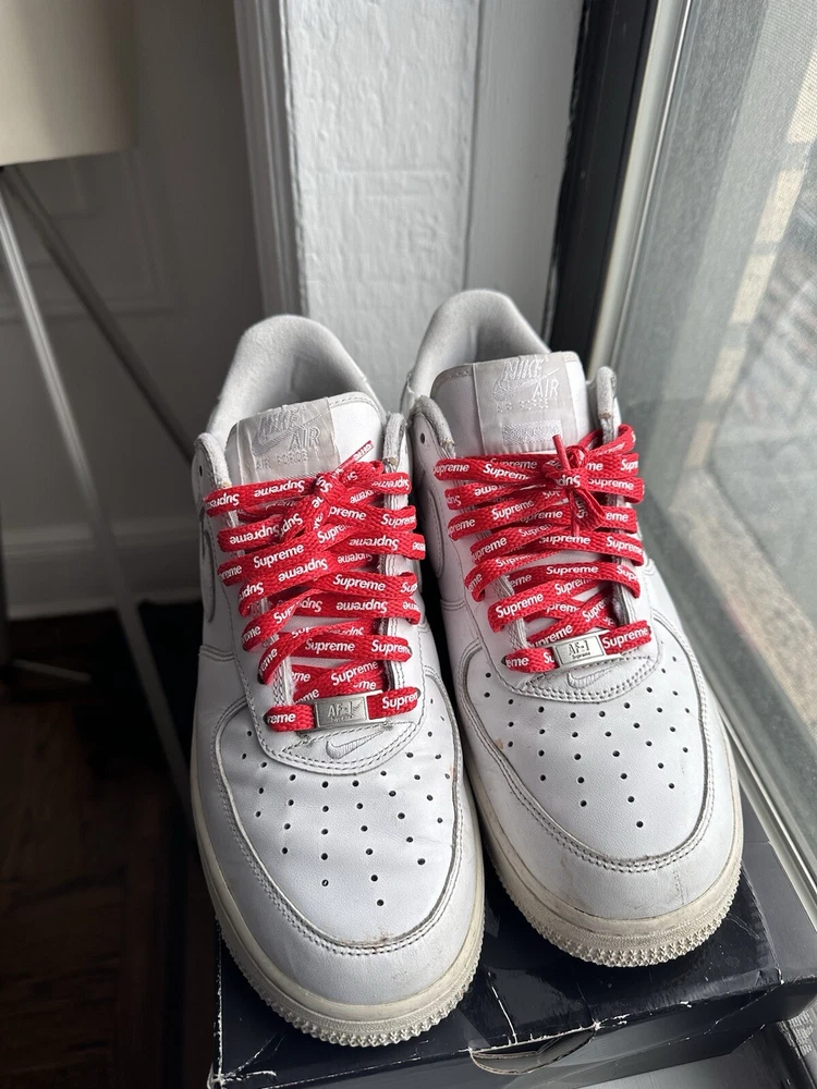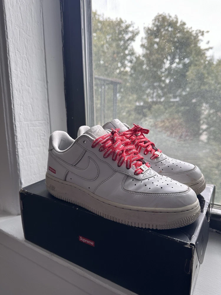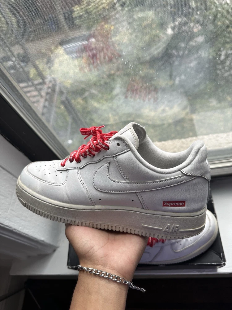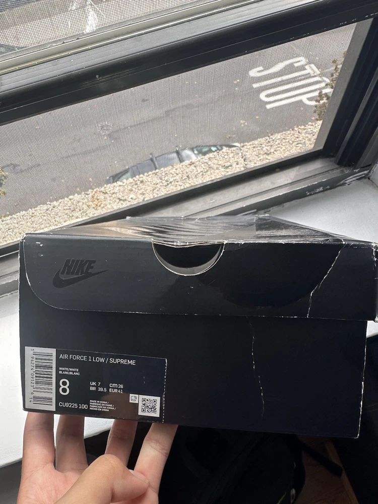 Size 8 - Nike Air Force 1 x Supreme Low Box Logo - White
