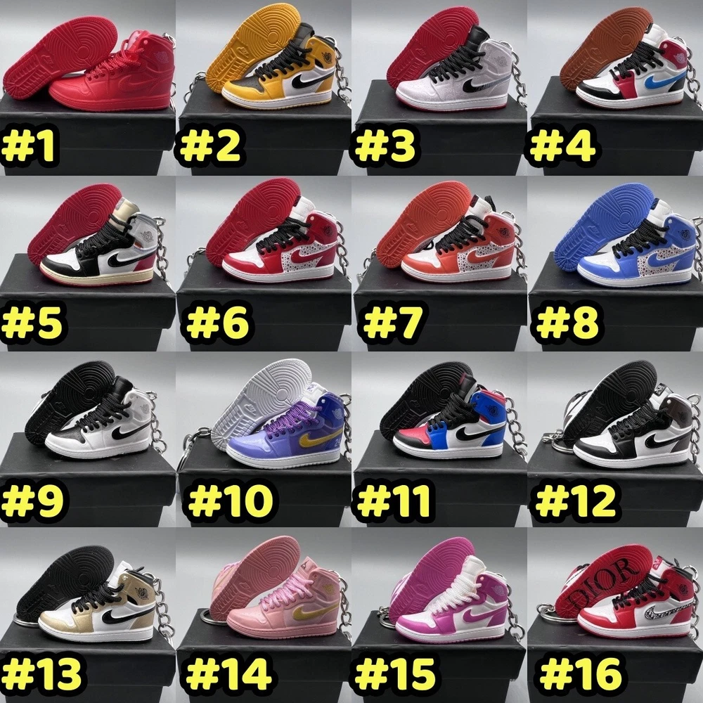 PLEASE READ BEFORE YOU PURCHASE This is the best quality you can get, many other cheaper ones have poor quality, I know all the factories trust me, some really be making crap and you can not tell from the pictures. Handcrafted and hand-painted 3D Mini Sneaker Keychains inspired some of the most coveted sneakers ever produced Materials as ABS Plastic (Soft Plastic) Jordan pin color will be given randomly (If chosen) All Shoe keychain size is about 2 1/2 (L) x 1" (W) x 2" (H) The shoe Tongue is movable, it is not cracked or broken. Random shoe box styles will be given, if you have a preference please get in touch with me. These are all handmade and hand-painted with better paint, if you want to find a lower price please seek lower quality, my key chains are the best quality you can find. We've been selling these key chains for 3+ years, and have the most styles & best quality with super fast shipping. Search OCEAN LUMINE BOUTIQUE on any search engine to visit us! CLICK ME FOR MORE STYLES Disclaimer Product packaging, specifications, and prices are subject to change without notice. All information about the products is provided for information purposes only. Please always read labels, warnings, and directions provided with the product before use. Shipping We will ship all orders within 2 business days of payment, we provide free upgrade USPS shipping service up to 2-DAY Priority if Urgent Contact We can be contacted at any time through eBay messages if you have any questions, comments or product requests. We will respond to you within 24 hours and do our best to help you out! Features and further details 3000+ keychains in stock with up to 400+ styles We do bulk orders with discounts and provide long-term business relationships More styles are available in my shop PP WORLD