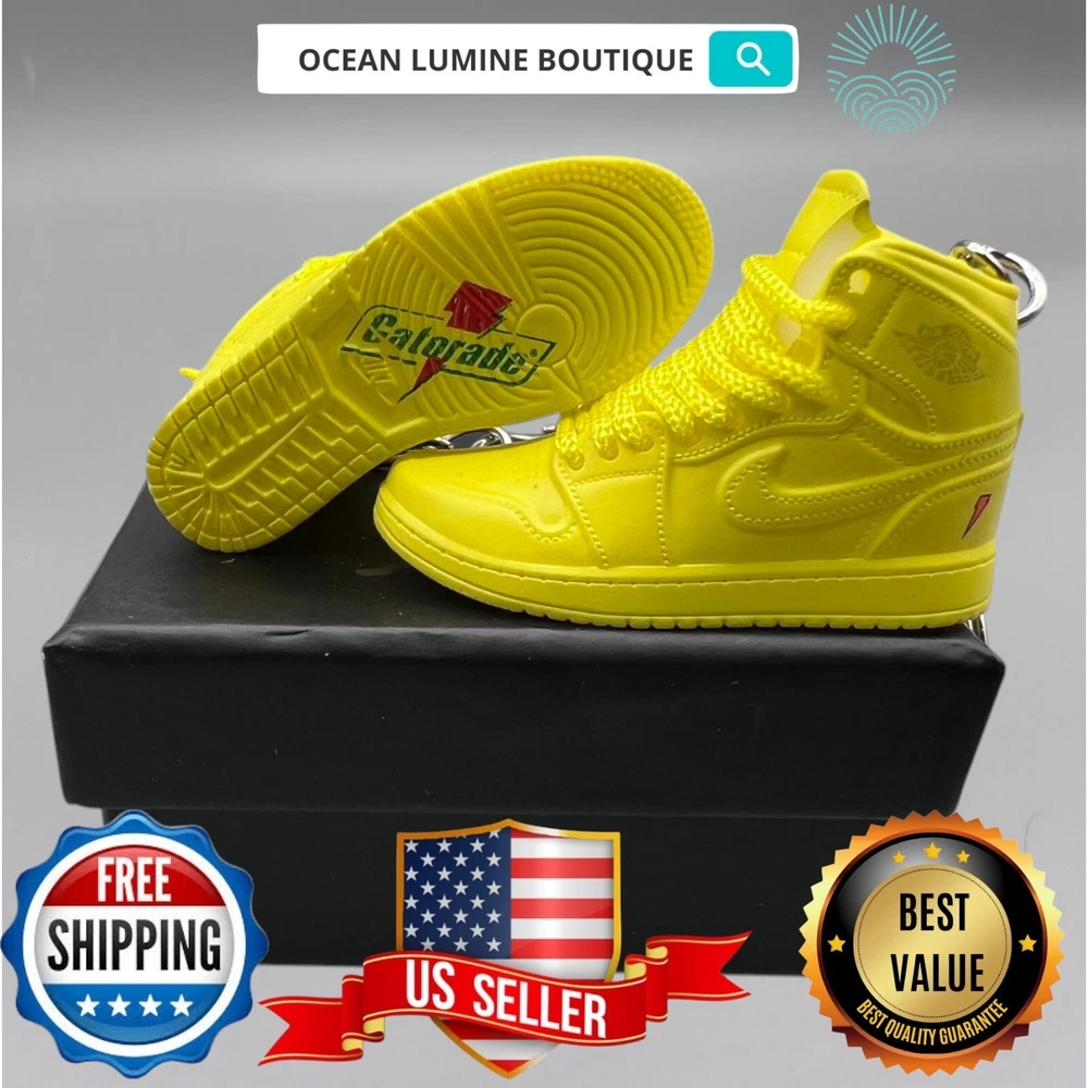 PLEASE READ BEFORE YOU PURCHASE This is the best quality you can get, many other cheaper ones have poor quality, I know all the factories trust me, some really be making crap and you can not tell from the pictures. Handcrafted and hand-painted 3D Mini Sneaker Keychains inspired some of the most coveted sneakers ever produced Materials as ABS Plastic (Soft Plastic) Jordan pin color will be given randomly (If chosen) All Shoe keychain size is about 2 1/2 (L) x 1" (W) x 2" (H) The shoe Tongue is movable, it is not cracked or broken. Random shoe box styles will be given, if you have a preference please get in touch with me. These are all handmade and hand-painted with better paint, if you want to find a lower price please seek lower quality, my key chains are the best quality you can find. We've been selling these key chains for 3+ years, and have the most styles & best quality with super fast shipping. Search OCEAN LUMINE BOUTIQUE on any search engine to visit us! CLICK ME FOR MORE STYLES Disclaimer Product packaging, specifications, and prices are subject to change without notice. All information about the products is provided for information purposes only. Please always read labels, warnings, and directions provided with the product before use. Shipping We will ship all orders within 2 business days of payment, we provide free upgrade USPS shipping service up to 2-DAY Priority if Urgent Contact We can be contacted at any time through eBay messages if you have any questions, comments or product requests. We will respond to you within 24 hours and do our best to help you out! Features and further details 3000+ keychains in stock with up to 400+ styles We do bulk orders with discounts and provide long-term business relationships More styles are available in my shop PP WORLD