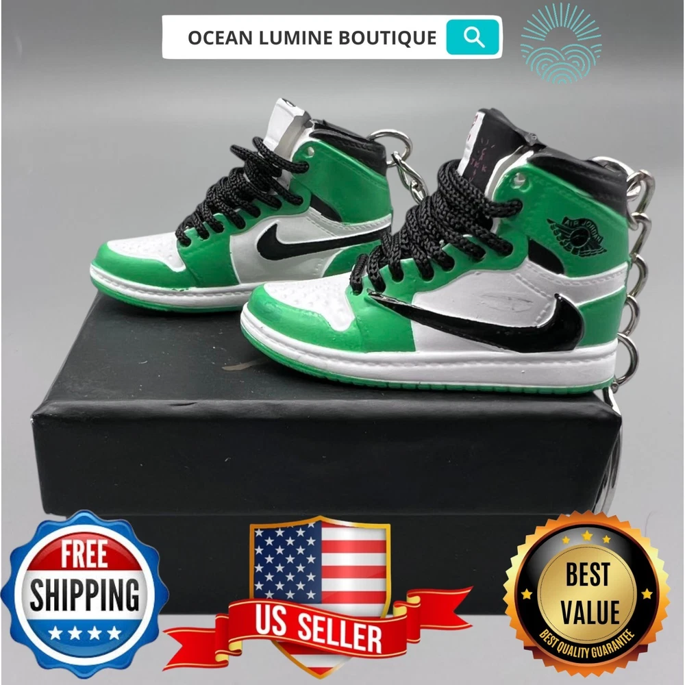PLEASE READ BEFORE YOU PURCHASE This is the best quality you can get, many other cheaper ones have poor quality, I know all the factories trust me, some really be making crap and you can not tell from the pictures. Handcrafted and hand-painted 3D Mini Sneaker Keychains inspired some of the most coveted sneakers ever produced Materials as ABS Plastic (Soft Plastic) Jordan pin color will be given randomly (If chosen) All Shoe keychain size is about 2 1/2 (L) x 1" (W) x 2" (H) The shoe Tongue is movable, it is not cracked or broken. Random shoe box styles will be given, if you have a preference please get in touch with me. These are all handmade and hand-painted with better paint, if you want to find a lower price please seek lower quality, my key chains are the best quality you can find. We've been selling these key chains for 3+ years, and have the most styles & best quality with super fast shipping. Search OCEAN LUMINE BOUTIQUE on any search engine to visit us! CLICK ME FOR MORE STYLES Disclaimer Product packaging, specifications, and prices are subject to change without notice. All information about the products is provided for information purposes only. Please always read labels, warnings, and directions provided with the product before use. Shipping We will ship all orders within 2 business days of payment, we provide free upgrade USPS shipping service up to 2-DAY Priority if Urgent Contact We can be contacted at any time through eBay messages if you have any questions, comments or product requests. We will respond to you within 24 hours and do our best to help you out! Features and further details 3000+ keychains in stock with up to 400+ styles We do bulk orders with discounts and provide long-term business relationships More styles are available in my shop PP WORLD