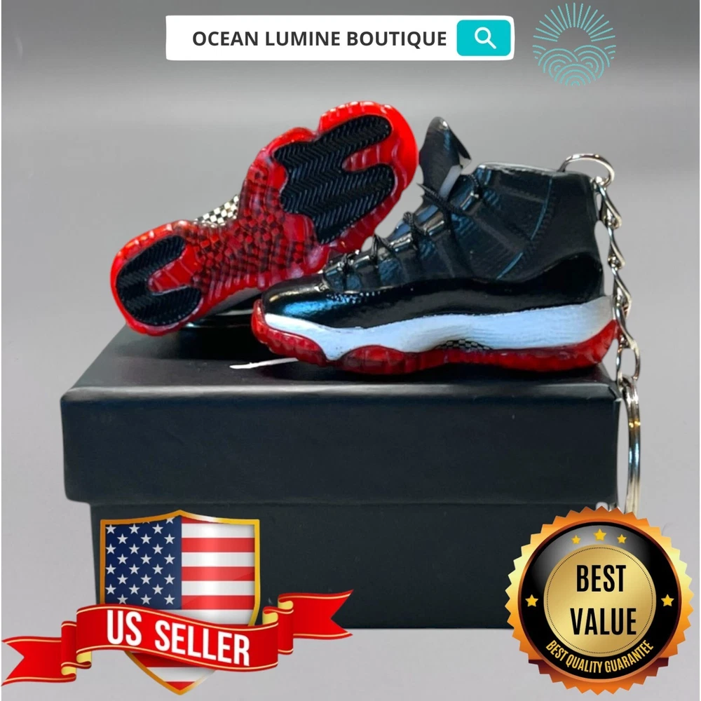 PLEASE READ BEFORE YOU PURCHASE You get the style in the very first pic, if you searching for more styles plz visit my page Handcrafted and hand-painted 3D Mini Sneaker Keychains inspired some of the most coveted sneakers ever produced Materials as ABS Plastic (Soft Plastic) Jordan pin color will be given randomly All Shoe keychain size is about 2 1/2 (L) x 1" (W) x 2" (H) The shoe Tongue is movable, it is not cracked or broken. Random shoe box styles will be given, if you have a preference please get in touch with me. These are all handmade and hand-painted with better paint, if you want to find a lower price please seek lower quality, my key chains are the best quality you can find. We've been selling these key chains for 3+ years, and have the most styles & best quality with super fast shipping. Search OCEAN LUMINE BOUTIQUE on any search engine to visit us! CLICK ME FOR MORE STYLES Disclaimer Product packaging, specifications, and prices are subject to change without notice. All information about the products is provided for information purposes only. Please always read labels, warnings, and directions provided with the product before use. Shipping We will ship all orders within 2 business days of payment, we provide free upgrade USPS shipping service up to 2-DAY Priority if Urgent Contact We can be contacted at any time through eBay messages if you have any questions, comments or product requests. We will respond to you within 24 hours and do our best to help you out! Features and further details 3000+ keychains in stock with up to 400+ styles We do bulk orders with discounts and provide long-term business relationships More styles are available in my shop PP WORLD