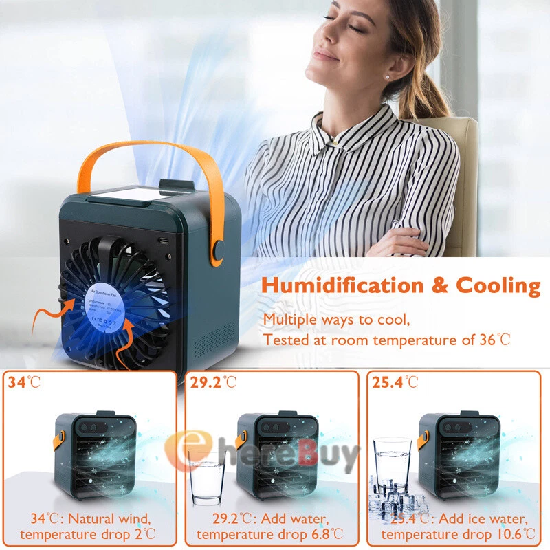 Aire acondicionado portátil USB con ventilador silencioso y 3 velocidades Green-3 Speeds Air Conditioning Fan w/ Mirror Feature: ✔ Fast Cooling: Portable air conditioner is a portable air conditioner that integrates cooling,humidification and purification,cooling you in hot summer and humidifying the air in dry autumn and winter. ✔ Low Noise Mode: The air conditioner fan has an adjustable air outlet(30°angle),which can work effectively at low noise level,without disturbing your work,study or sleep. ✔ Multifunctional Fan: The air conditioner fan not only has the function of spray humidification and cooling,but also can be used as a mobile phone holder and beauty mirror,allowing you to enjoy leisure time while watching movies and free your hands. ✔ Intelligent Wind Control: Portable air conditioner fans have 3 wind speed options,low energy consumption,uniform speed,simulates natural wind,and provides the confort you need-low,medium or high speed. ✔ USB Rechargeable: The air conditioner fan has a built-in-2400mAh battery,which can be used for 5-8 hours when fully charged,and the included USB data cable can be plugged into any available USB port(laptop,desktop,power bank)to power the air conditioner fan. ✔ Easy to Carry: The air conditioner fan is light in weight,with a carrying strap,you can carry it with you,it is perfect for home,office,car,outdoor,camping and it is also a must-have small fan for your office and living room. Specification: Product name:Mini Air Conditioning Fan Producy model:F80 Color:Green Material:ABS Input current: 1A Rated power: 3W Input voltage: 5V 3 Speed:High/Medium/Low Wind Speed Water Tank Capacity: 150ml Charging input:5V-1000ma Battery capacity:2400mAh Plug interface: Type-C Use time: 3-5 hours Product size:125*150*85mm/4.92*5.91*3.35inch Product weight:420g Package include: 1x Air conditioner fan(built-in battery) 1x User manual 1x USB charging cable 1x Packing box Desk Tower Fan Feature: -- Quiet Operation: Made of high-quality ABS material, durable, The fan adopts vortex cross-flow technology, which makes the noise quiet and comfortable, suitable for work and rest. -- 3 Wind Gear: USB rechargeable, the tower fan has 3 levels of wind power adjustment,the wind gentle and stable, 360° multi-angle supine design, air outlet can be adjusted as desired. -- Stable Base: The base is designed with silicone pads, which can be placed horizontally or vertically and have a good anti-slip effect, so the fan will not tip over on the desktop. -- Wide Application: Desktop tower fan can be easily placed on the table, suitable for outdoor sports, camping, fishing, backpacking, and also very suitable for home and office. Specification: Product model: E2 Color: White Material: ABS Rated power: 3.5W Rated voltage: 5V-1A Winds gear: 3 Power supply mode: USB Battery capacity: 1800 mAh Product size: 6*8*27cm/2.36*3.15*10.6inch Package includes: 1*Desktop Fan 1*Power Cord 1*Instruction Manual 1*Packing Box White-Bladeless Neckband Fan Feature: ✔ 3 Speeds: The neckband fan has a left and right dual-turbine design, 60 fan blades to enhance the wind power, with 3 grears adjustable, first gear breeze, second gear natural wind, third gear strong wind, low noise, sustainable use for 18 hours. ✔ Lightweight Design: The hanging neckband fan is small in size and light in weight, the neckband fan is as light and portable as an earphone and can be hung on the neck, it will not feel tired after hanging it for a long time, at the same time, it will not heat up, it will not curl your hair, it can prevent dust and sweat, and say goodbye to dust accumulation. ✔ Hands-free and Portable: The hanging neck bladeless fan has a foldable design, which can flexibly adjust the wind direction of 150° and can be easily carried in a bag, it can not only provides comfortable neck protection, but also can free your hands and enjoy the cool wind. ✔ Wide Range of Uses: The hanging neckband fan has a Micro USB interface, it can be quickly fully charged in 3 hours, very suitable for summer, barbecue, walking, mountain climbing, hiking and other activities, and also a companion for travel and outdoor sports. Specification: Product model:H11 Product name:Bladeless neckband fan Color:White Material:ABS+PC Input voltage:DC 5V-1A Power:3W Gear: third gear Charging time:3-4 hours Battery cell:Lithium-ion battery(built-in) Battery capacity: 5000mAh Power supply: USB Usage time:3-18 hours(depending on the seevice at different levels/usage scenarios) Weight:About 245g Product size:208(L)*206(W)*62(H)mm/8.2*8.1*2.4inch Package includes: 1x Fan 1x Use Manual 1x Micro-USB Charging Cable 1x CPE Bag 1x Packing Box Desk Fan Features: * Using the brush and slotless motor,to ensure the high winds and long-life. * Intelligent control system,reliable performance. * Using the international standard 18650 capacity lithium batteries. * USB rechargeable :Support computer and other other USB port charging. * High-quality LED light: LED lamp tube, no flicker, good helper for emergency power failure. * Mini & portable: Light weight makes it easy to carry.For Home, Office, Travel, Camping, Outdoor, Indoor Specification: Battery: 18650 battery Material: ABS Life time: 6 hours Speed type: three-speed Product size: 14*10.5*3.5cm Color:black Cable size:16.4cm Package Includes: 1 x Fan 1 x Data cable Payment Delivery details About us Contact us Terms of sales Payment * PayPal,VISA,Credit Card & eCheck accepted. * Payment should be expected with 7(Seven) days after bid. We appreciate prompt payment and unpaid items will be filed for Final Value Fee if payment not received in 7 days. Delivery details Shipping available time: Mon. - Fri. exclude holidays Orders will be shipped out within 1 business day (unavailable on weekends & holidays).Once it is shipped, the tracking number will be sent to you for your tracking. For the domestic orders, it is expected to reach you in 2-5 business days. We Ship to Payment address ONLY. So pl