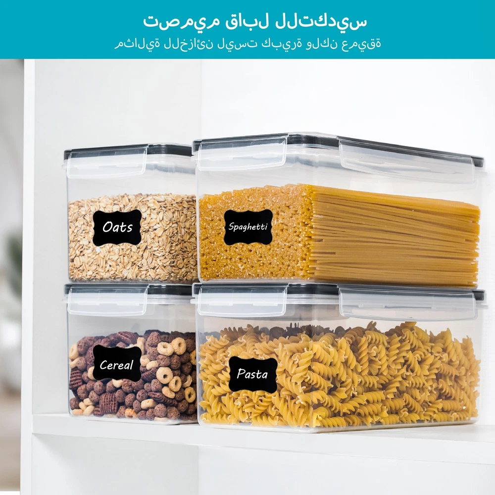 Vtopmart Airtight Food Storage Containers with Lids 4PCS Set 3.2L, Plastic Spaghetti Container for Pasta Spaghetti organizer, BPA Free Air Tight House Kitchen Pantry Organization and Storage [Horizontal Storage] Our pasta storage containers can lay horizontally from front to back of the cabinet instead of standing upright, which avoids things getting lost at the back of the shelf and keeps every item close to the front. Perfect for not large but deep cabinets. So clever to have your long pasta lay flat, so you can just reach right in and grab a handful and can end up seeing them breaking into tiny spaghetti pieces. [Suitable Storage Size] The set comes with 4 same size kitchen storage containers, 3.2L/2.9qt/108fl oz for each. Large enough for 8lbs spaghetti. Also perfect for pasta, fettuccine, lasagna noodles, angel hair, linguini, fusilli, farfalle, garganelli, macaroni, cereals, snacks and other dry food. [Secure Sealing Ensure Freshness] The side-locking lids are thick yet easy to snap on and off. The rubber gasket of our pasta containers keeps out air and moisture, so your food in it may taste just like the day you open after a few months. [Durable] Vtopmart pantry containers are made of shatterproof plastic, BPA free, which have a longer life than many other brands of plastic containers. [24 Reusable Labels and 2 Measuring Cups] Except for 4pcs plastic airtight food storage containers, you will also receive 24pcs labels and two cups. The smart labels are reusable. If you want to switch contents, just wipe them clean with a damp cloth, and rewrite them. Cups make measuring out ingredients easier and less messy. Shipping We offer FREE shipping on all orders! We ship within Three business days of payment, usually sooner. We use a selection of shipping services such as UPS, FedEx, USPS etc. We only ship to the lower 48 states, no APO/FPO addresses or PO Boxes allowed. Local pickups and combined shipping options are not provided at this time. International buyers – please note: Import duties, taxes, and charges aren't included in the item price or postage cost. These charges are the buyer's responsibility. Please check with your country's customs office to determine what these additional costs will be prior to bidding or buying. Order Cancellation Policy * Order Cancellation Policy ** You can return a product for up to 30 days from the date you purchased it. 1. The seller reserves the right to cancel the special case only due to eBay cancellation fee. 2. The decision of seller is the final. 3. The seller will respond to the cancellation request within 2 business days. Please wait for the result of cancellation. 4. In case the cancellation is not completed by some reasons, the buyer can follow the options below to get the refund. 4.1 The buyer can reject the item when it arrives. 4.2 The buyer can send the item back to the seller within 30 days If the buyer receives item (USA Shipment ONLY). The seller will provide the FREE return label to the buyer when the buyer opens " Return Item" case on eBay by using the reason as "Change my mind" ONLY. 5. When buyer has placed the order. The order will be processed and completed by automatic warehouse system within 5 minutes. In case that buyer sends the cancellation request after 5 minutes of placing the order, the request will be rejected. **Sending direct message to cancel the order is not allowed for every case.* Return Policy - If buyer would like to return the items for refund or replacement, please CONTACT SELLER to receive the free return label from seller. The refund or replacement will be processed with the tracking number of return label which is provided by seller only. The other ways of return which are not approved by seller will not be processed for the refund or replacement. Return You can return a product for up to 30 days from the date you purchased it. Any product you return must be in the same condition you received it and in the original packaging. Please keep the receipt. Payment We accept payment by any of the following methods: eBay Payments Please pay as soon as possible after winning an auction, as that will allow us to post your item to you sooner! Feedback Customer satisfaction is very important to us. If you have any problem with your order, please contact us and we will do our best to make you satisfied. Contact Us If you have any queries, please contact us via ebay. We usually respond within 24 hours on weekdays. Please visit our eBay store to check out other items for sale! Thank you for shopping at our store.