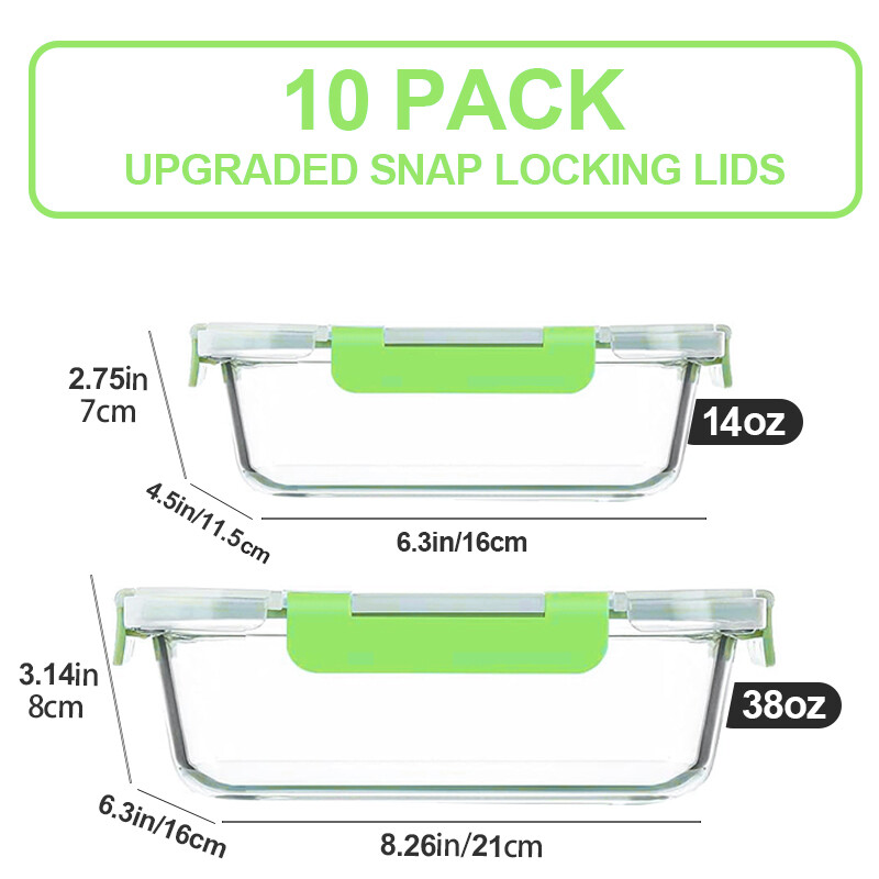 Item description from the seller Buling 20 Pc Glass Food Storage Containers Airtight Lids Microwave/Oven/Freezer & Dishwasher Safe - Steam Release Valve BPA/ PVC-Free -Small & Large Reusable Square and Circle& Rectangle Bento Containers 20 piece set - This set includes 10pieces glass meal prep containers and 10 pieces plastic lids. With three shapes and 10different sizes, you can find containers that are suitable for storing lunches and leftovers, as well as small containers that are suitable for sauces and snacks. These containers with lids are ideal for meal prepping, portion control, and providing convenience for taking meals to office, gym, picnic or travel. BUILT IN VENT - If you want a container that you can pop directly in the microwave or oven, look for a glass container with built-in vents under the locking lid. This type of lid provides the airtight storage you need to keep your food fresh and the convenience you need to reheat food in seconds Airtight And Watertight Silicone Sealed BPA-Free Plastic Lid. Plus Four Tab Locking System. VERSATILE USE - Our food containers are made of high-quality borosilicate glass, ensuring a long service life and providing you with peace of mind. You can use them with confidence in ovens, microwaves, dishwashers (with lids removed), and freezers, as they are BPA free and suitable for daily use.The lid adopts an airtight sealing design to prevent overflow and keep the food fresh. They are easy to clean, suitable for home, office, meal preparation, and dining out, catering to different lifestyles. Multiple options- These containers are not only used for storing food; They can also be used as convenient containers for preparing meals. Whether you are preparing meals or packing work lunches, our glass food storage containers are the ideal choice. Suitable for families, professionals, and students, providing flexible food storage solutions for daily use Elaborate design - Our innovative design simplifies the storage and inspection of items. It helps save valuable space in kitchen cabinets or refrigerators. Transparent glass provides a beautiful and charming display cabinet, making it effortless to identify the items stored inside. On Jan 8, 2025 at 03:04:14 PST, seller added the following information: