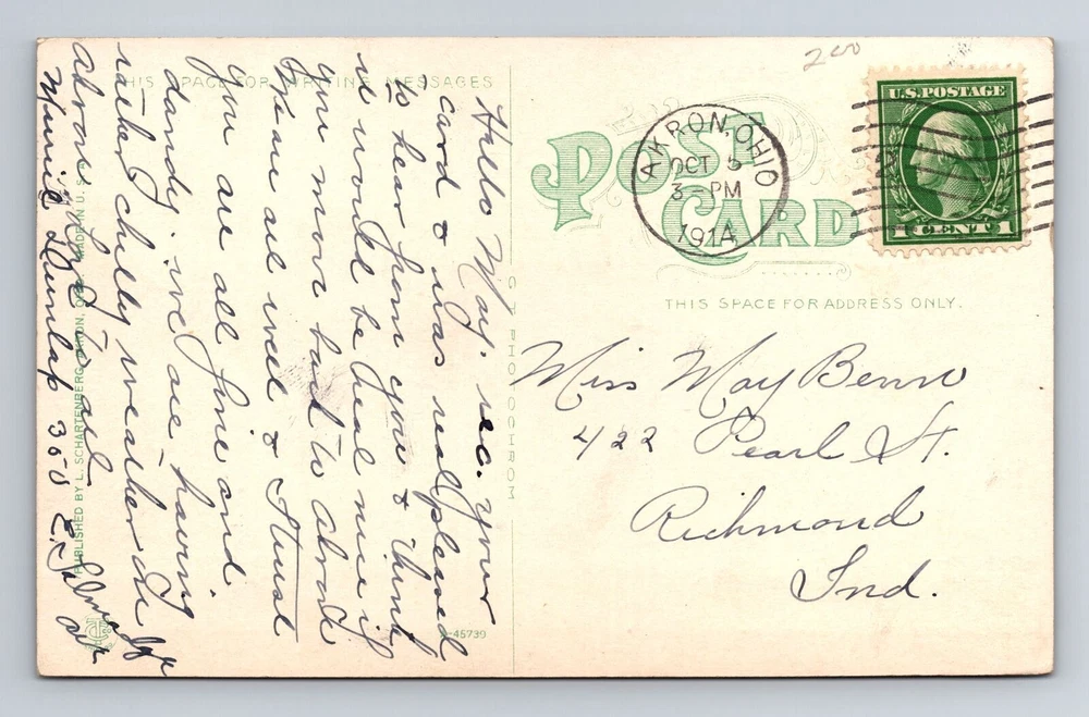 City: Akron Subject: Cities & Towns Country: USA Country/Region of Manufacture: Unknown Unit of Sale: Single Unit Type: Printed (Lithograph) Era: Vintage Theme: Cities & Towns Postage Condition: Posted Original/Licensed Reprint: Original Material: Paper Size: Standard (5.5 x 3.5 in) Region: Ohio