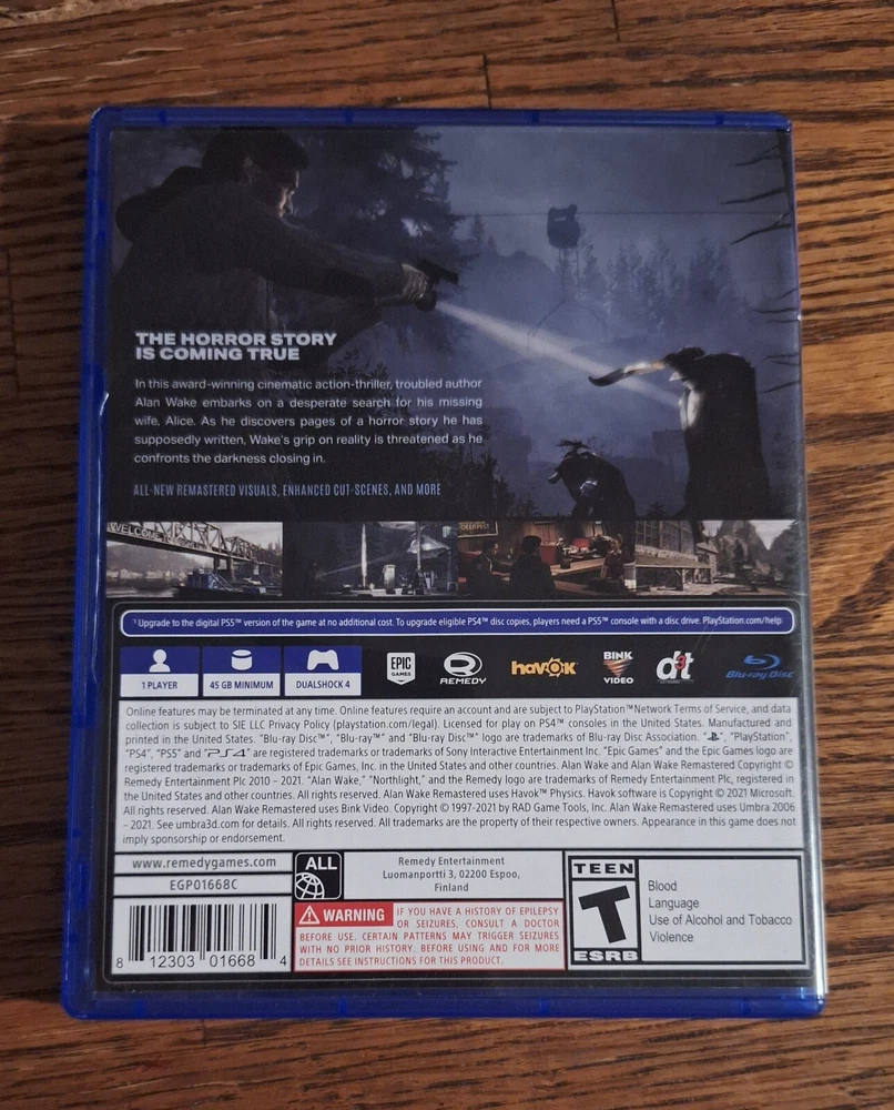 Alan Wake Remastered For PlayStation 4 is excellent condition.