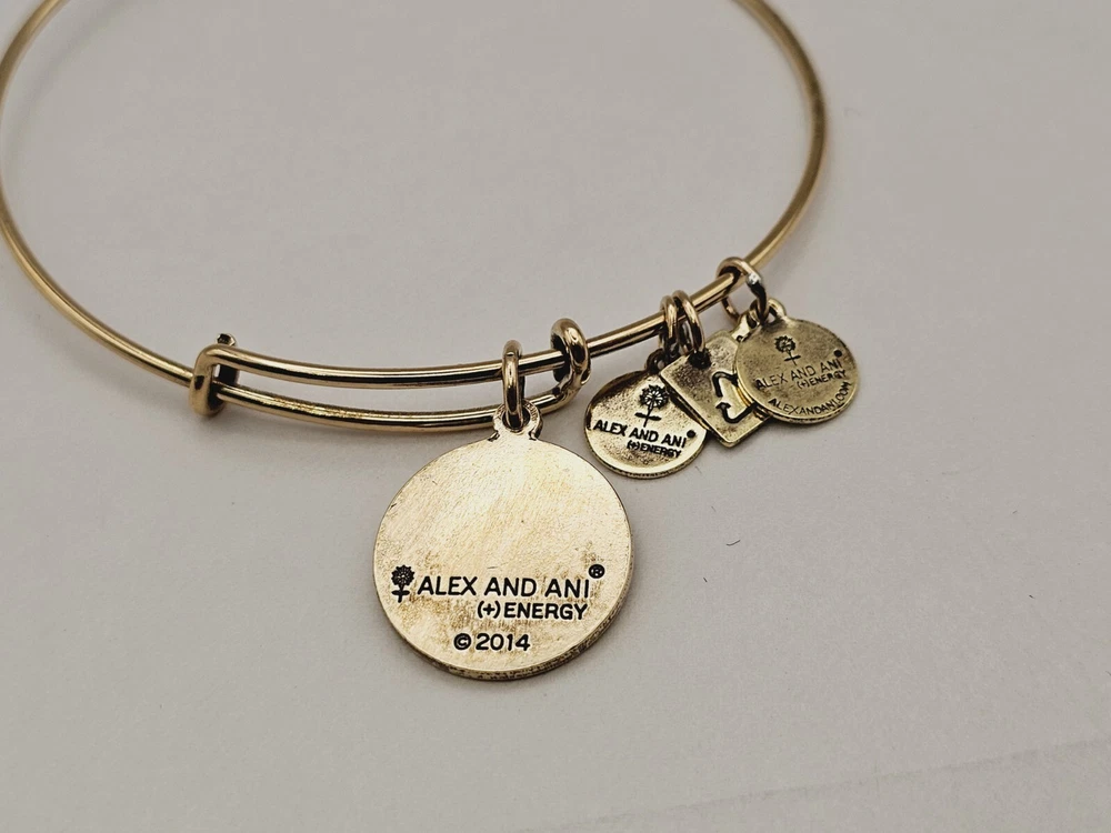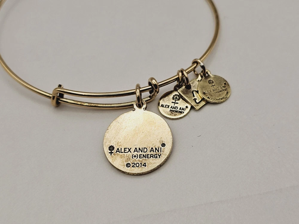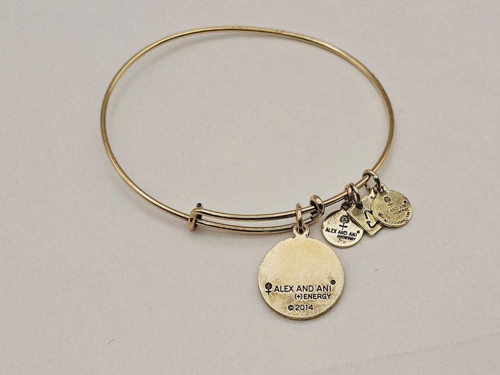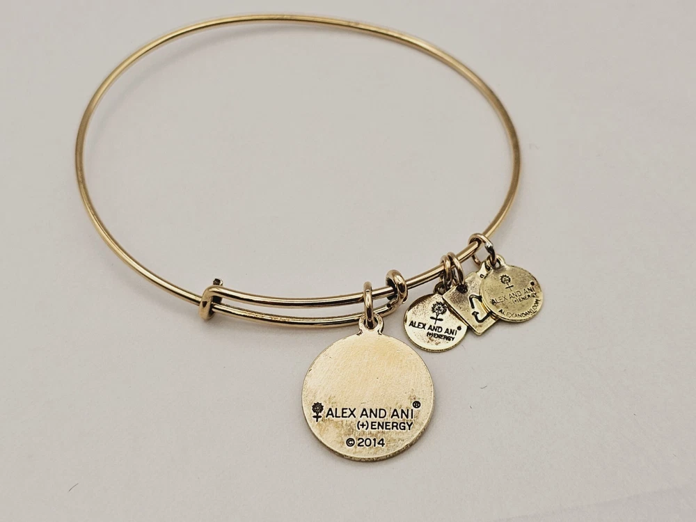 Alex and Ani Charm Bangle Bracelet Gold in color β¨οΈπ Condition is Pre-owned This one is in good condition . Take a look at the pictures for more details. Comes as shown in the photos. Will ship item via USPS Standard Ground Advantage mailing in a padded shipping envelope. I reserve the right to cancel any sale or bid due to late payment . If you need more pictures or info feel free to send me a email. We also offer combined shipping to help reduce shipping costs for multiple pieces . Usually 5 pieces on average in one shipping package is around 5 dollars for all to ship to your home or business. Thanks for looking β¨οΈβΊοΈπ