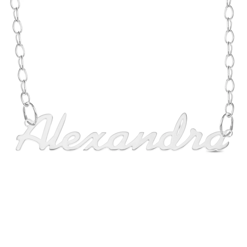 "Amanda" Laser Cut 925 Sterling Silver Name Rolo Necklace - Personalized Custom " Alexandra " Laser Cut 925 Sterling Silver Name Rolo Necklace - Personalized Custom " Alexandra " Laser Cut 925 Sterling Silver Name Rolo Necklace - Personalized Custom Sterling Silver Personalized Name Necklace on a beautiful Rolo/Trace Chain. Personalized in Alako Font style with Name - Alexandra - Comes complete with superior mirror polish. Name Necklace details: - Sterling Silver 925 - Personalized Name Necklace with Name: Alexandra - Thickness: 1mm of solid Sterling Silver - Chain style: Rolo/Trace Chain in solid Sterling Silver - Length: 16 inches BRAND NEW and custom laser cut. This is USA's most popular script font Necklace and the perfect gift for any occasion. Hand made and polished in the UK out of solid 1 mm thick silver sheet. This listing is for name: "Alexandra" Please don't hesitate to contact me if you have any questions regarding this item. Listing and template services provided by inkFrog