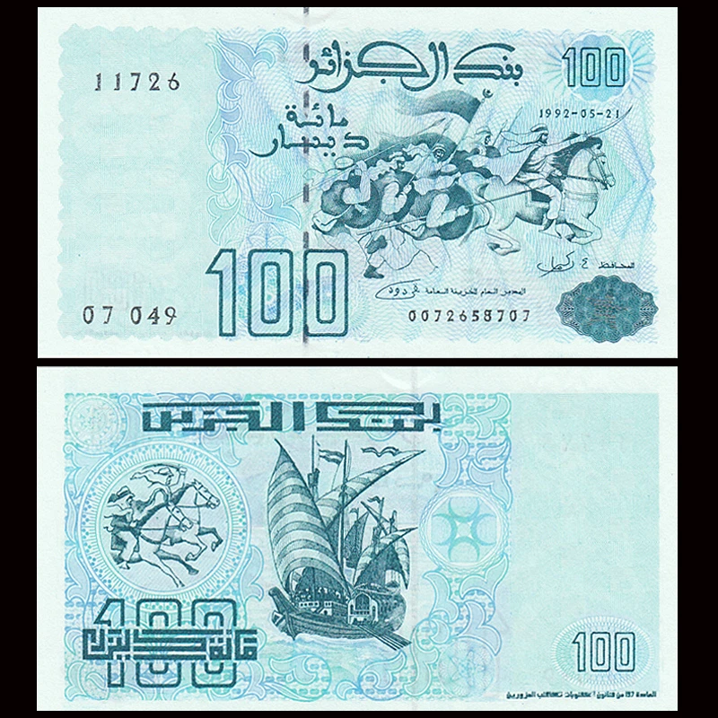 Algeria 100 Dinars, 1992, P-137, UNC About US ------------------------------------ We are the biggest seller of real banknotes and coins in China started in 2008. We don't make copies.None copies in our store. About Notes & Coins ------------------------------------ The actual note may have a different serial number,signaturs and prefixs.Please use the image as a reference only. The notes and coins we sell are 100% real and UNC We can combine shipping for some items. We can provide Serial Number for lots notes. 100% Satisfaction Guranteed shipping ------------------------------------ we ship the item via USPS to USA ( 10-15 days for shipping), Via china-post to world( 10-30 days for shipping). Some remote area maybe take a little longer, Please be patient. we will ship out in 48 Hours after the payment is cleared. Feedback ------------------------------------ If there is a problem, contact us in advance, please don't leave negative/neutral feedback without communication. We'd appreciate the opportunity to work with you to ensure a successful transaction. Please feel free to E-mail us with any questions,We will respond in 24 hours .