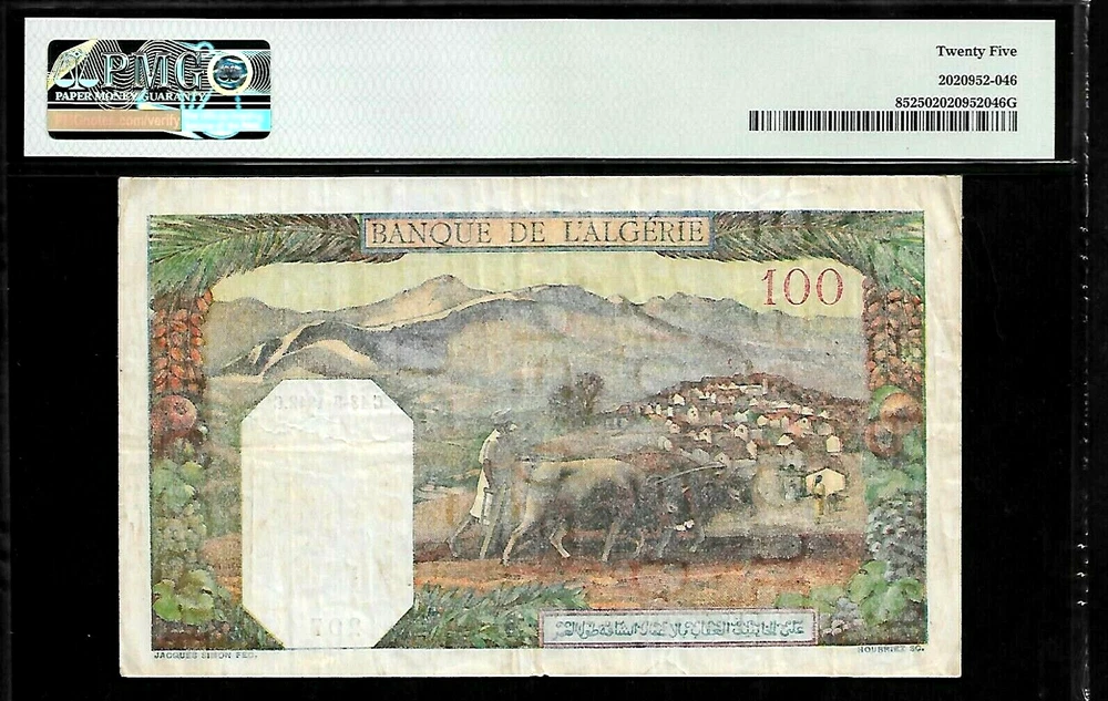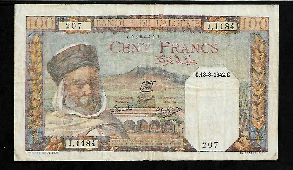 Algeria 100 Francs 1942 PMG 25 P#85 Series J Banque de I'Algerie ########################################################### Shipping Charges: U.S. Shipping First Class Mail: $ 4.95 Combine Shipping Cost We are shipping Internationally. Ask for Rate