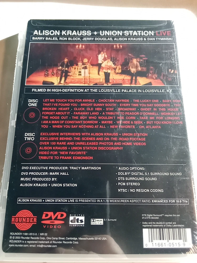 Experience the impeccable harmony of Alison Krause & Union Station with this 2-disc set capturing their vibrant live performances. The set features 23 songs that showcase the band's exquisite Bluegrass style, infused with the raw energy of Country Rock. Released in 2003 by Rounder Records, this DVD is a treasure for fans and newcomers alike, providing over 3.5 hours of exceptional musical talent. The DVD is presented in a standard jewel case ensuring secure storage and longevity. Krause's warm vocals and Union Station's dynamic instrumentation are beautifully captured, making it a must-have for any music lover's collection. Proudly produced in the United States, this live edition DVD is a testament to the timeless artistry of this celebrated ensemble.