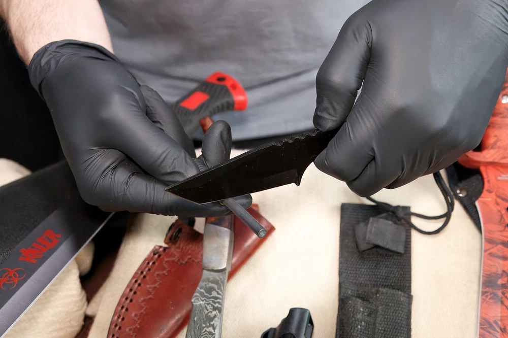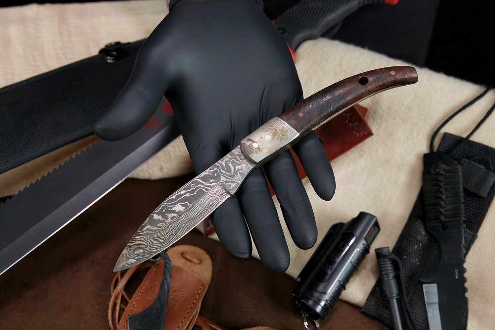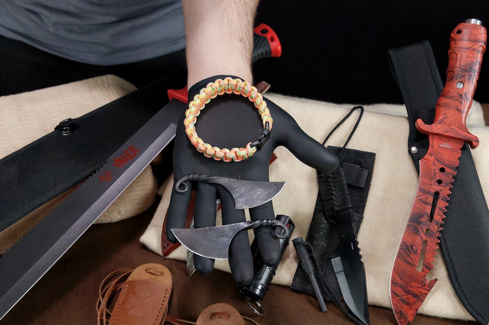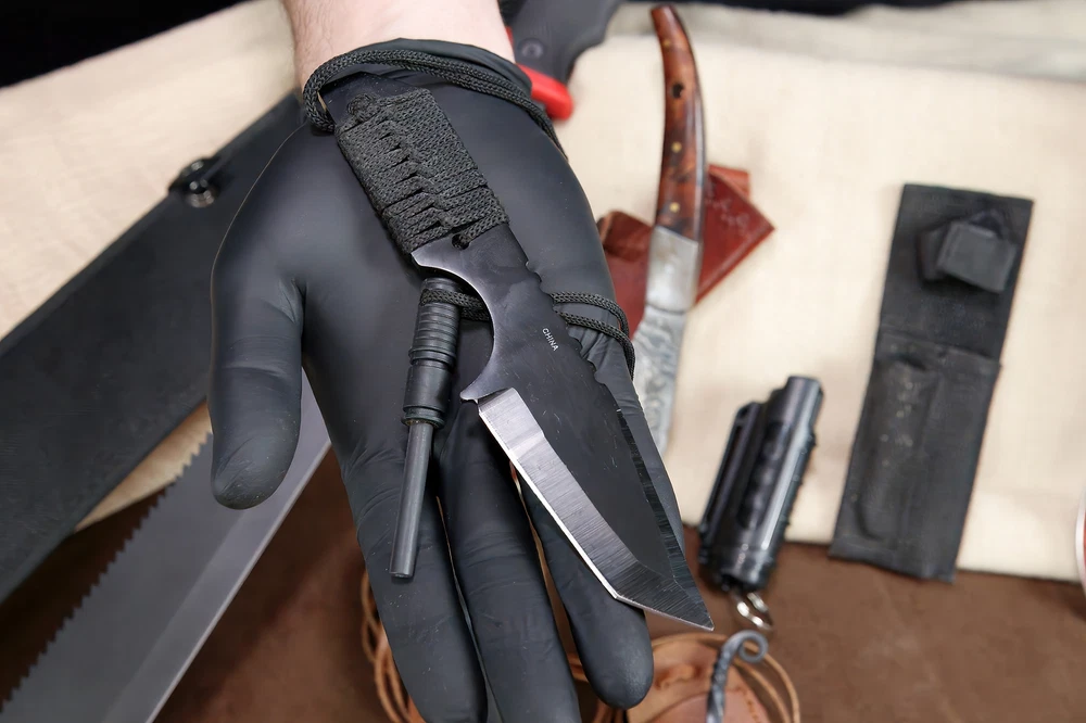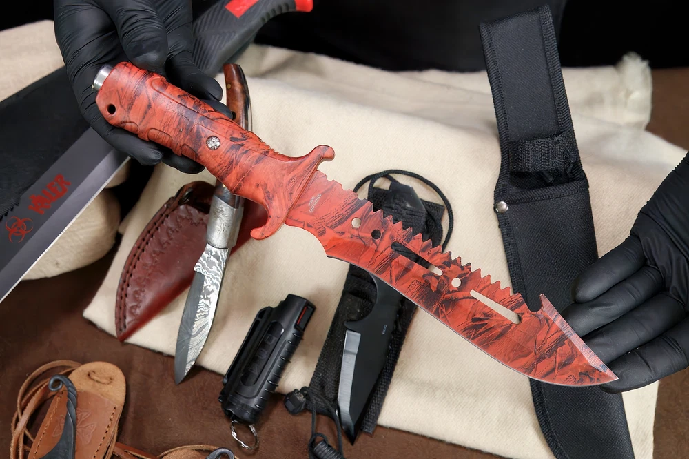 Specifications: Large Fixed Blade (Machete Style): Black handle with red accents Sturdy black nylon sheath with attachment loops/pockets Red & Black Serrated Knife: Red & black patterned handle serrated blade Includes black nylon sheath Pepper Spray: Compact black canister Clip-on for belt/pocket carry Mini Neck Knives (2): Small fixed blades Leather sheaths with lanyards Unique blade shapes and handle styles Knife with Fire Starter: Small black fixed blade Ferrocerium rod fire starter included Compact black sheath Paracord Bracelet: Orange and white weave pattern Durable with black plastic buckle Features: All-in-One Survival Kit: Knives, fire starter, pepper spray & paracord Machete-Style Fixed Blade for chopping and heavy-duty cutting Serrated Red/Black Knife with tactical grip & sheath Two Neck Knives lightweight & easy to carry Ferro Rod Fire Starter ignite campfires easily Paracord Bracelet woven for emergencies Compact Pepper Spray non-lethal personal defense Ideal for camping, bug-out bags, preppers, hunters & tactical collectors Description: This all-in-one Survival Knife & Tactical Gear Bundle is perfect for outdoor adventurers, preppers, collectors, or anyone building a bug-out bag. The set includes a large machete-style knife , a red and black fixed blade knife , pepper spray , two mini neck knives , a paracord survival bracelet , and a knife with ferro rod fire starter --a complete kit for defense, survival, and outdoor use. The heavy machete-style fixed blade features a black handle with red accents and a rugged nylon sheath with extra compartments. Complementing it is a red and black fixed blade knife with a partially serrated edge and a nylon sheath. For close defense, a clip-on pepper spray canister is included. Two miniature neck knives with leather sheaths and lanyards provide discreet backup tools, while the black fixed blade with ferro rod fire starter ensures you're ready to spark a flame in the wild. A paracord survival bracelet , woven in orange and white, completes the set for both function and style. Whether you're camping, hiking, hunting, or prepping, this bundle offers a versatile range of tactical tools in one value-packed lot.