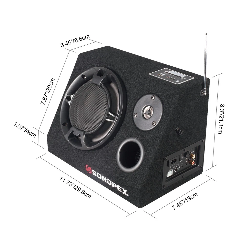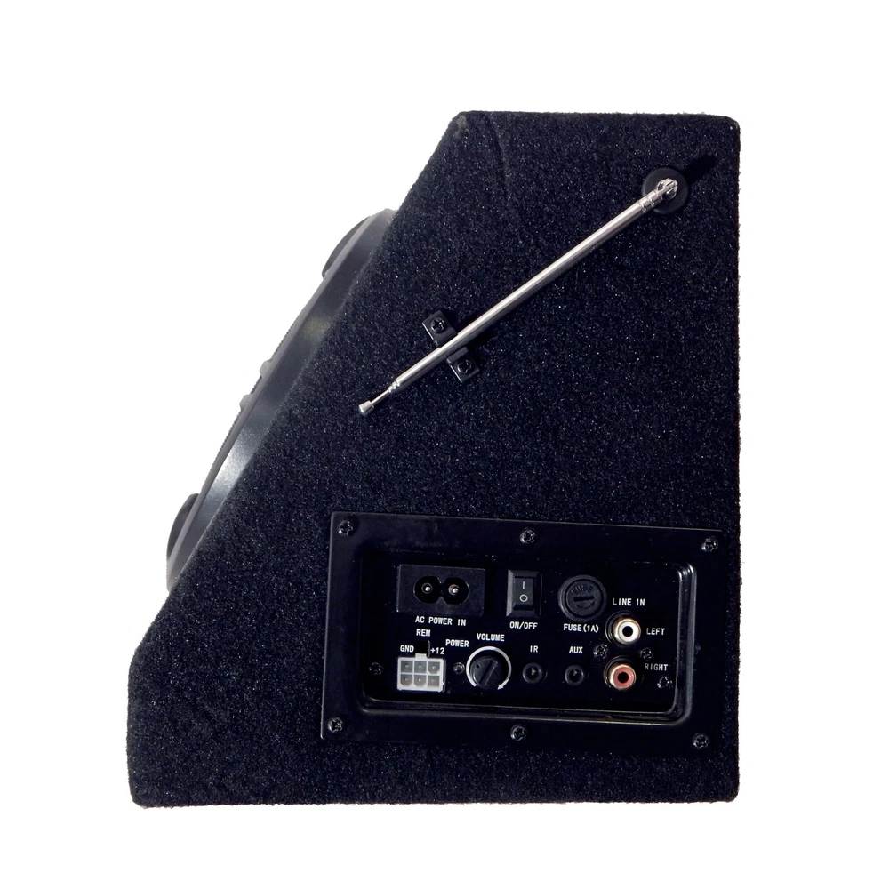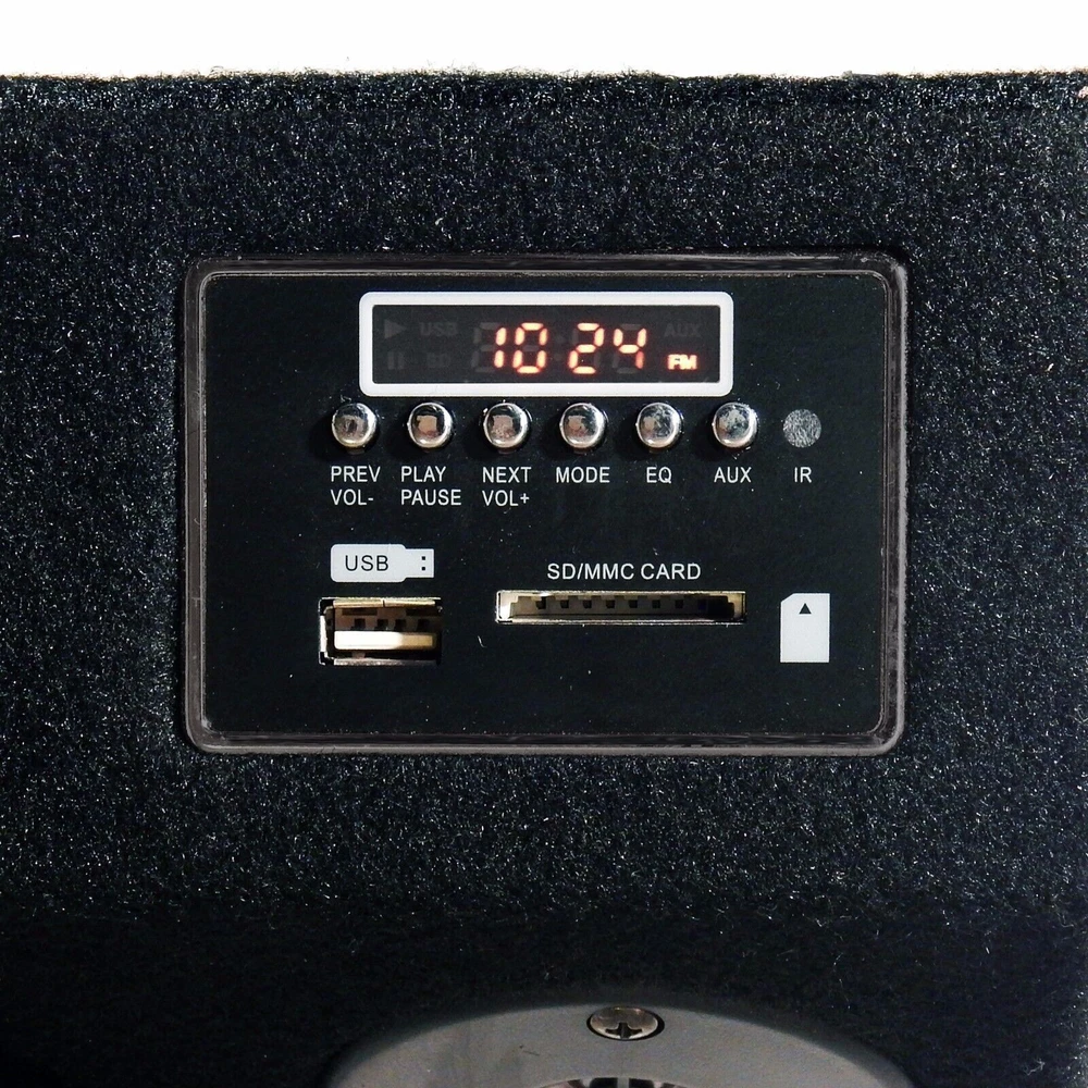 CSF-E65B The most ingenious sound system we've ever seen! It's perfect for picnics, outdoor parties, the beach & more. Plus it will blow you away with 200 watts of raw power. The Bluetooth function allows you play music from any Bluetooth enabled digital player or smart phone wirelessly. It has an FM digital tuner plus AUX inputs so you can listen to tunes from your iPod, MP3 player, CD player and more! You can download MP3 music into USB Flash Drive or SD card; then play music by insert it to USB or SD slots. Features LED display, RCA inputs/outputs, AUX input, AC/DC operation, 6-1/2" woofer and super 3" tweeter. Comes with remote with IR cable for operating from your dashboard, 3.5mm stereo audio cable and 12V power kit included. 6.5” woofer with paper cone foam edge, Super 3" tweeter and built-in amplifier with 200W Max output power Bluetooth function allows playing music wirelessly SD/MMC card and USB Reader; can play MP3 music directly from storage devices AUX-in port allows for a wired connection with other portable devices, such as MP3 player, iPod, iPhone and other cell phones Built-in FM Radio Receiver with auto scan and memory function with RCA cable input and output terminal (RCA cables not included) Dual Power: 110V AC and 12V DC / USB port with 5V/2A power to charge any cell phones or tablets Remote control and 12V power cable wiring kit with cigarette adapter