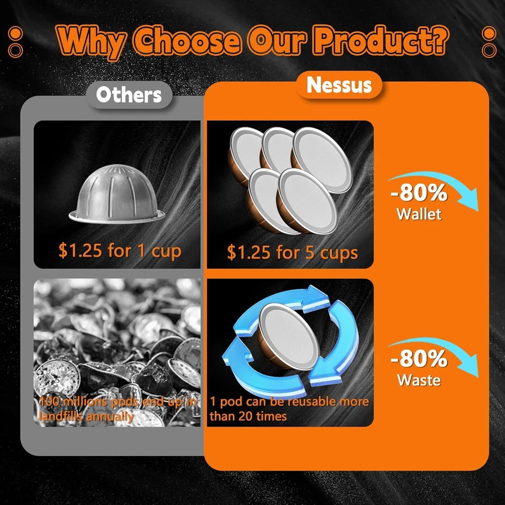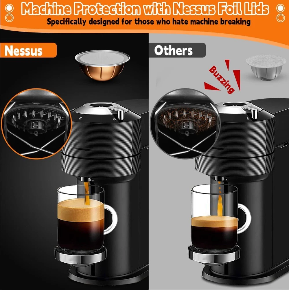 Aluminum Foil Lids for Nespresso Vertuo Reusable Pods, 100 PCS Foil Seal Cover f PERFECT SIZE & ADHESION: Say goodbye to foil waste, weak coffee, and machine damage caused by ill-fitting seals. NESSUS foil lids easily position reusable vertuo pods without covering the barcode. Plus, they feature food-grade adhesion that keeps your pods airtight and well-sealed, so you can prefill them and enjoy fresh coffee anytime. SAVE YOUR MONEY: Specially designed for Nespresso pods vertuo, NESSUS 100pcs foil seal lids help you easily refill and reuse your vertuo pods, saving money and reducing waste, providing convenience and high efficiency for your coffee life. EASY TO REFILL: Refilling your vertuo reusable pods with the NESSUS refillable pods kit is simple and hassle-free. Just put the empty capsule into the holder, add your favorite coffee powder, and use the NESSUS foils to align with the raised edge of the holder. Then, press the top cover to get a new capsule. UNLOCK ENDLESS POSSIBILITIES: Unlike being limited to a small variety of coffee blends, NESSUS Aluminum foil covers give you the ability to select the coffee of your choice. Whether it's your morning fuel or a relaxing moment shared with friends, Foil Lids for Nesprsesso reusable pods cater to your pursuit of coffee excellence, which make excellent gifts for coffee lovers. Shipping We offer FREE shipping on all orders! We ship within Three business days of payment, usually sooner. We use a selection of shipping services such as UPS, FedEx, USPS etc. We only ship to the lower 48 states, no APO/FPO addresses or PO Boxes allowed. Local pickups and combined shipping options are not provided at this time. Return You can return a product for up to 30 days from the date you purchased it. Any product you return must be in the same condition you received it and in the original packaging. Please keep the receipt. Customer satisfaction is very important to us. If you have any problem with your order, please contact us and we will do our best to make you satisfied. Contact Us If you have any queries, please contact us via ebay. We usually respond within 24 hours on weekdays. Please visit our eBay store to check out other items for sale! Thank you for shopping at our store.