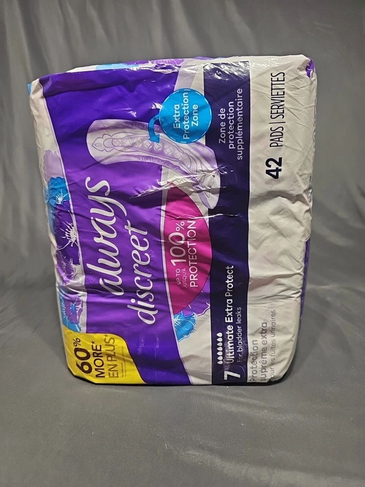 Features:Leak ProtectionAbsorbency:Super PlusAssembled Product Weight:2.14 lbgtin13:037000810254Fit Type:Universal FitBrand:Always DiscreetType:Incontinence PadsScent:UnscentedAssembled Product Dimensions (L x W x H):8.31 x 5.63 x 10.95 InchesUPC:037000810254