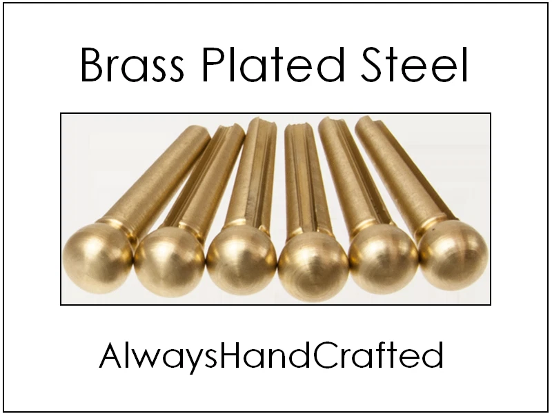 Hello again from AlwaysHandCrafted! We're very happy to offer our Brass Nut, Saddle and Pin Set for 6 string guitar. Fits most acoustic 6 string guitars. The Nut and Saddle are handmade from solid brass bar, the Pins are brassplate steel. All parts have a classic satin finish. Beautifully made and shipped immediately with full postal tracking. Nut - 1 11/16" long, 3/8" tall, 1/4" thick. Saddle - 2 3/4" long, 3/8" tall, 1/8" thick. Here's some recent Feedback from buyers of our items: "one word.... AWESOME" "Best items I've purchased ever, items are of the highest quality, 5 stars *****" "Very, very satisfied." "Super Fast Shipping Very Impressive!!! AAA+++++++ Awesome" "just what i needed A+++++++ Thanks!" "As described, good quality, good price, fast shipping. Highly recommended" "Great Communication, fast service, well packed, low shipping, will buy again!" "Great product, Great price and fast delivery."