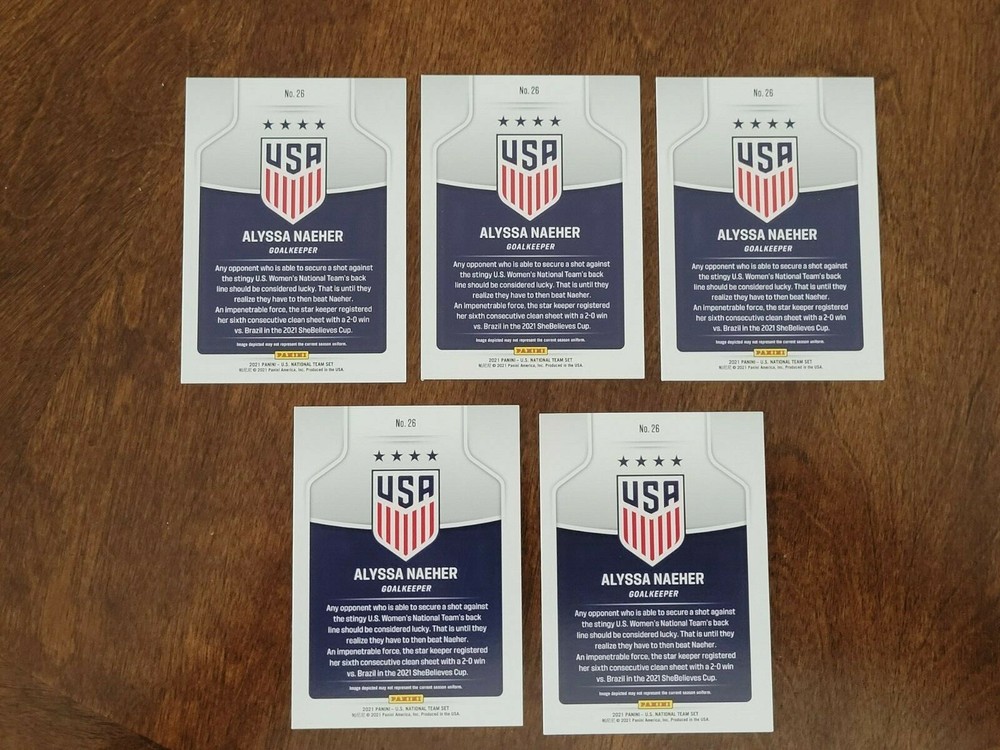 Lot of 5 Alyssa Naeher 2021 Panini Instant United States Soccer Women's National Team Card #26 Each lot purchased equals 5 cards. 1 lot = 5 cards 2 lots = 10 cards etc. We always package our items with extra padding to make sure they arrive to you safely.