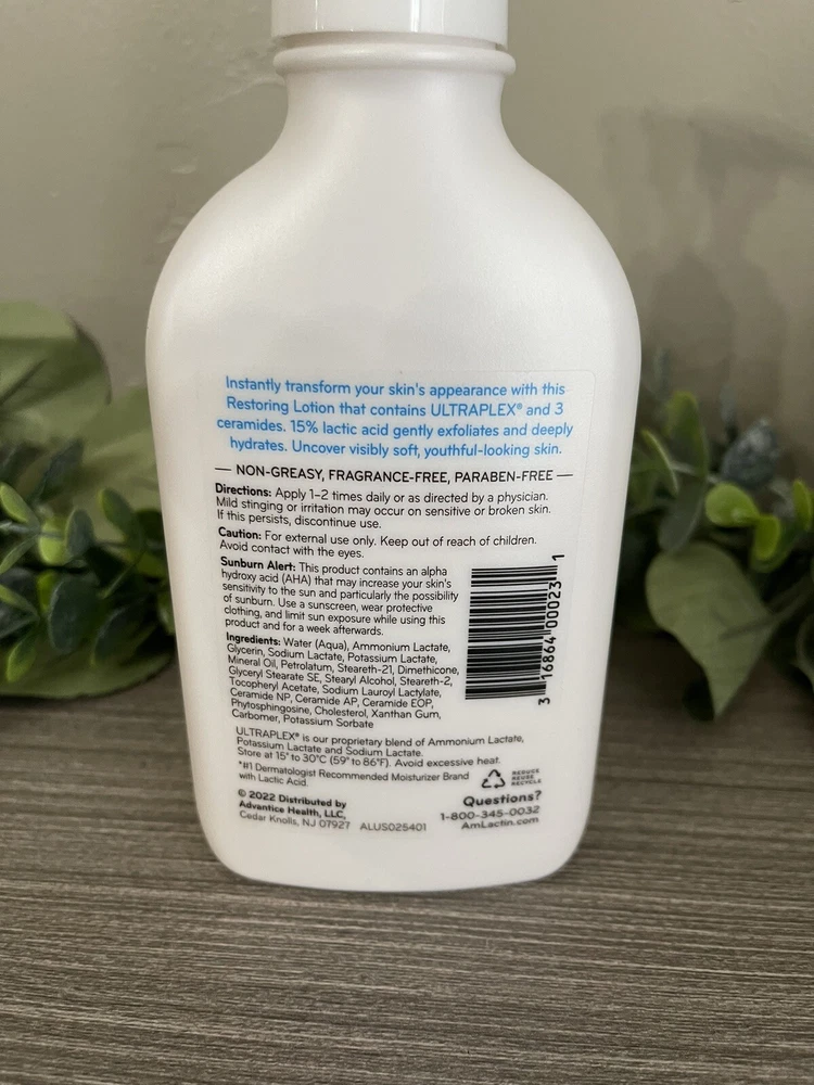 AmLactin Intensive Healing 15% Lactic Acid Exfoliate Lotion Hydrating 7.9 oz. About 90% full