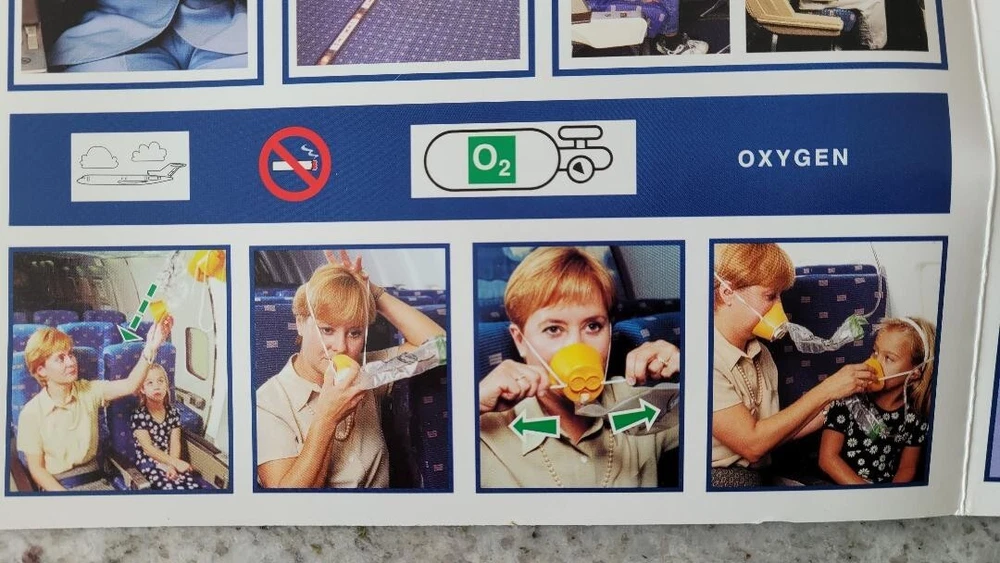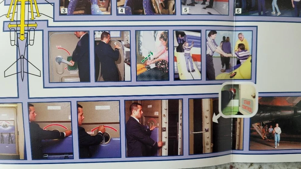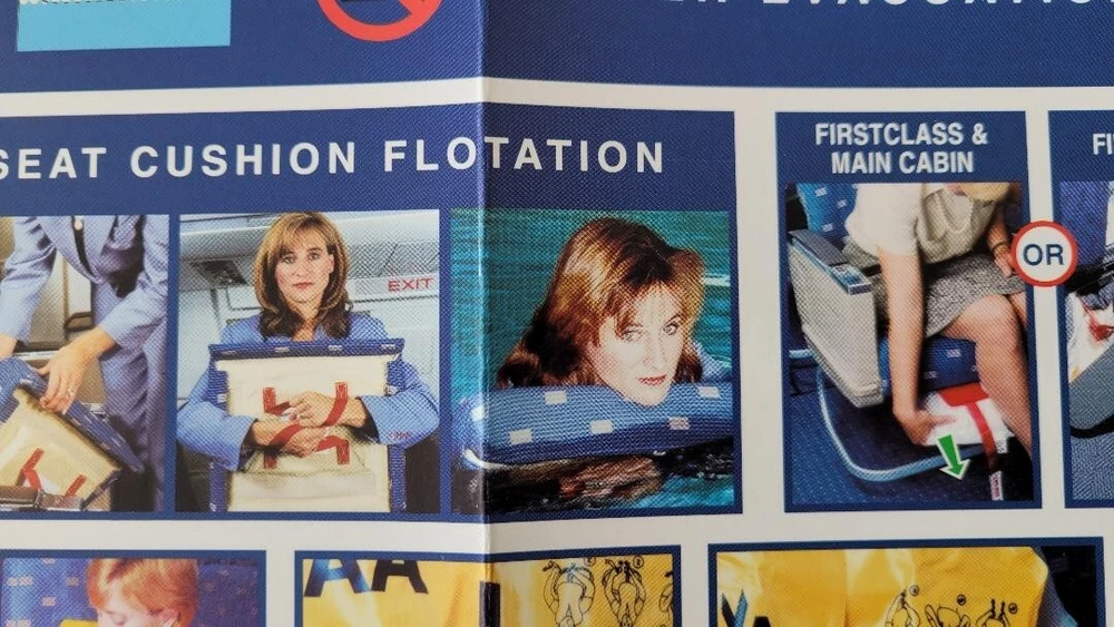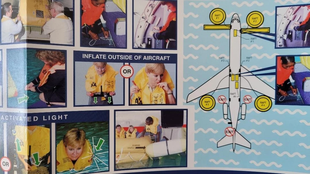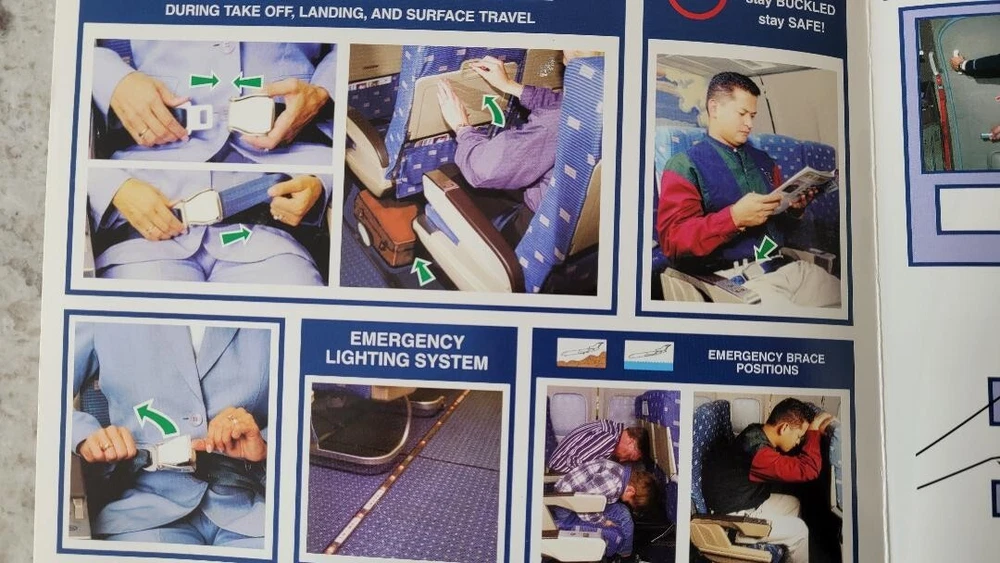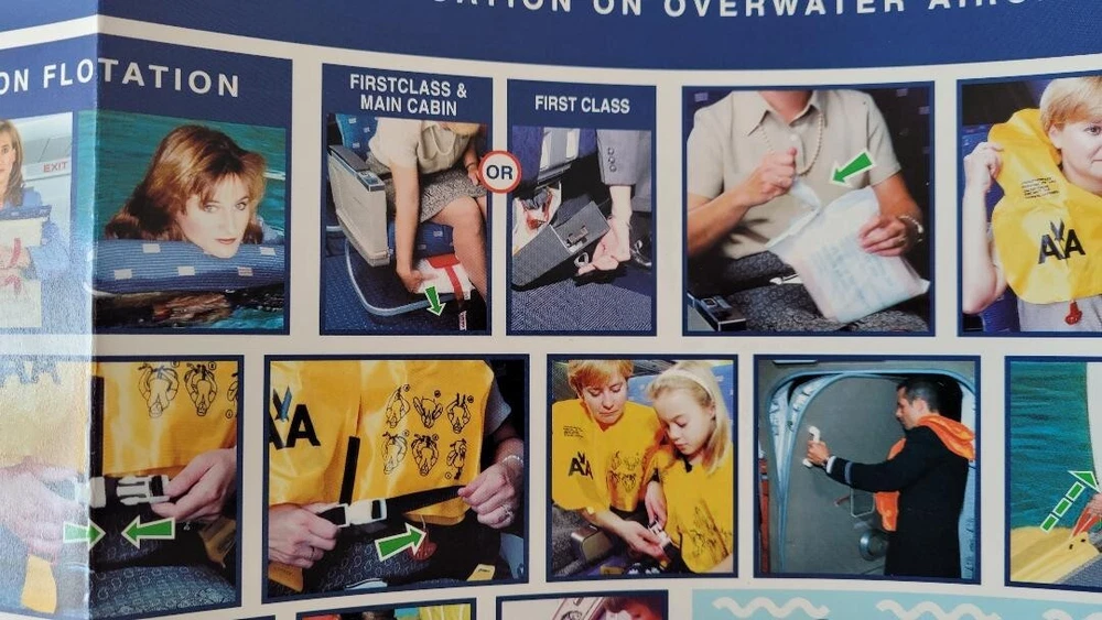 This is a never used, tri-fold safety card for the American Airlines B-727 which is dated back to November 2001.. Colored pictures showing land & water evacuations, inflation of life vest, use of oxygen & more.. It has NO soda / coffee stains or tears, nothing sticky and no writing on it.. Perfect condition....