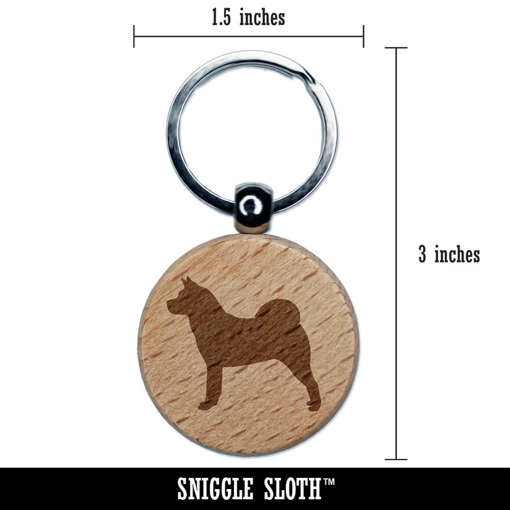 American Akita Dog Engraved Wooden Round Keychain Charm Tag