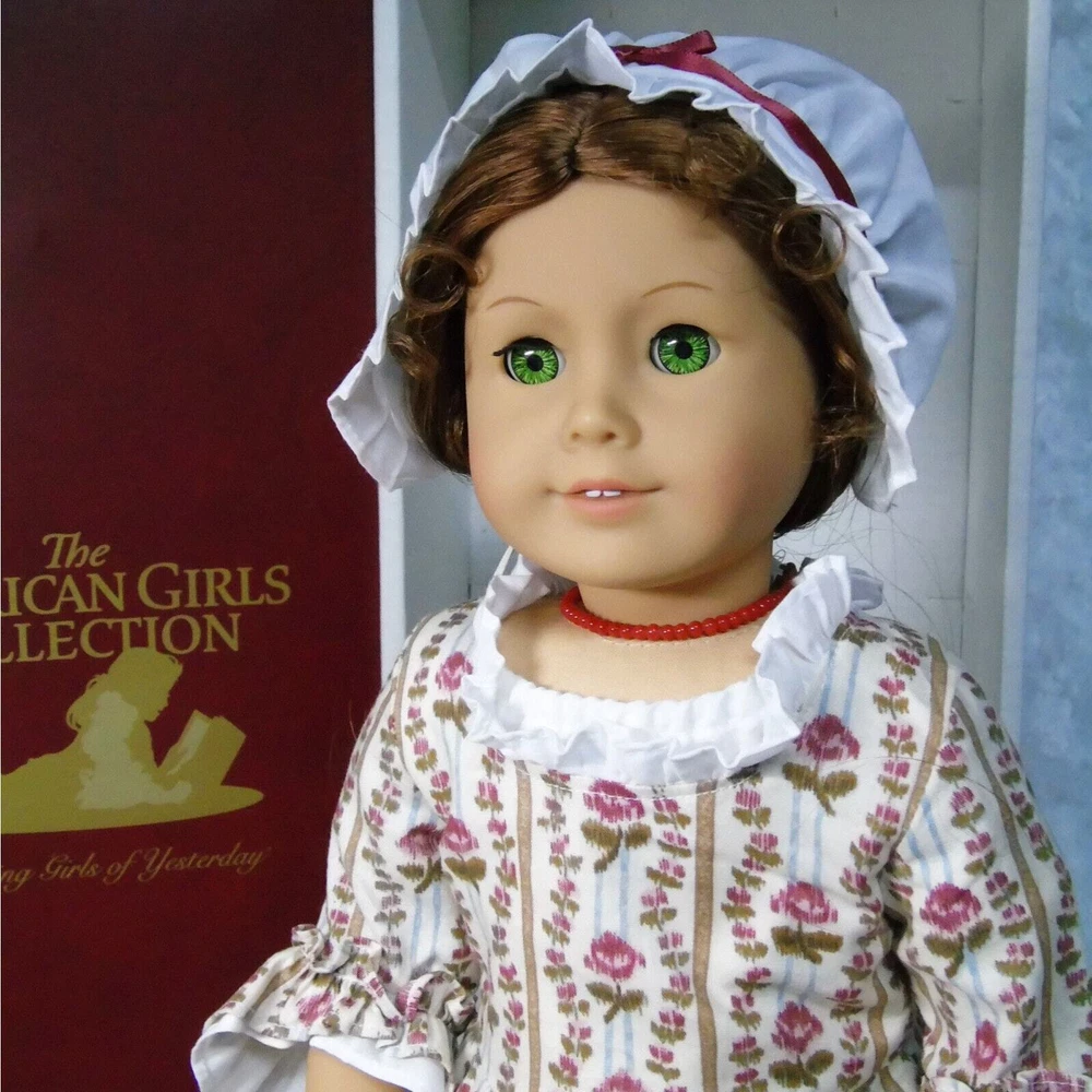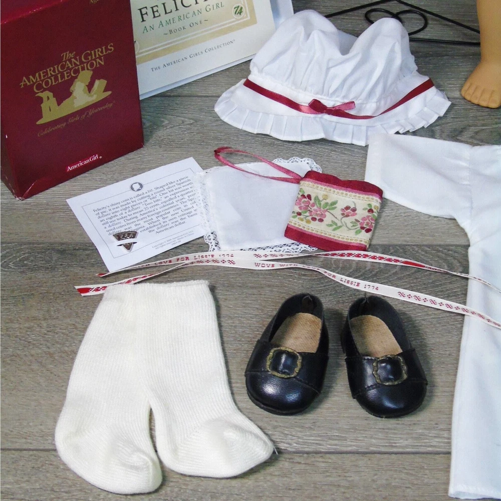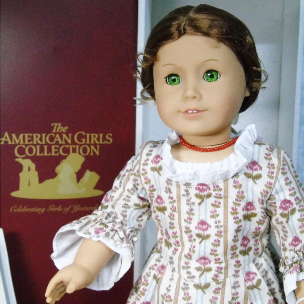 You Are Looking To Buy: American Girl DOLL 18" FELICITY MERRIMAN In Original MEET OUTFIT With ACCESSORIES. Red Hair Green Eyed Doll In American Girl Box by Pleasant Company With Meet Accessories In Box And 'Meet Felicity' BOOK! Who she is: Felicity Merriman Was The Fourth (4th) Historical Character Of The American Girl Dolls Representing The Revolutionary War Period! Felicity Was Released In Fall 1991. Felicity Was Officially Archived On March 28, 2011 And Re-released In 2007 For BeForever Collection! Light Skin, Green Eyes, Red Hair With Pin Curls On Sides! Felicity's Meet Outfit Has Had 3 Distinct Differ •The First (1st) - As Is With This Set - Is The Pleasant Company Label Dated From 1991-2005 A Cream Flower Striped "Rose Garden' Gown, White Shift Undergarment, Off-White Stockings, Black Shoes With Brass Buckle And Ivory Satin Hair Ribbon. Also Included In This Set Is Felicity's Original Meet Accessories In Box- Coral Necklace, Round-Ear Cap, Garters, Coin Bit, Handkerchief, And Drawstring Purse! •The Second Meet Outfit Was Felicity's Purple Travel Gown With Embroidered Flowers & Mop Cap, Knit White Socks And Black Shoes With Brass Buckles •The Third Meet Outfit Is Felicity's BeForever Meet Outfit - A Blue & Yellow Brocade Gown. Silk Brocade With Flowers, Vines And Buds Woven In Various Red and Yellows. With A Petticoat Panel Of Yellow Cotton With Diamond 'Quilting' In Gold, White Stockings and Brown Colonial Shoes With Gold Brass Buckles! •Felicity (nicknamed Lissie) is a tomboyish, daring, adventurous, spunky, brave, and fiercely independent-minded girl. She is very active for a girl her age in her era and is annoyed at her lack of freedom as a young girl and the ladylike things and personality that is expected of her. Felicity believes in fighting for what she wants and can be quite stubborn and headstrong at times; this gives her a strong connection to Benjamin Davidson. When she wants something, she goes for it, quite often without thinking about it. She sometimes wavers between brave and foolish and sets her heart on things often. When Felicity is angry, she's never afraid to speak her mind and stand up to bullies, as she did with Jiggy Nye. Felicity also isn't afraid to tease Annabelle, coming up with the name "Bananabelle". Felicity is good with coming up with names. She came up with Polly's, Posie's name, Penny's, and Patriot. •Felicity learned to ride and make friends with horses at Grandfather's Plantation; this aids her in taming Penny, but is a hindrance when it gives her overconfidence in Felicity Takes A Dare. •She is constantly fussed at for being not very ladylike. For the most part Felicity is a "tomboy" with a love for horses, nature, and the great outdoors. She is quite impatient—especially when it comes to things she finds dull and boring—and is often regarded as "flighty" and "thoughtless" by her mother and often chided for not finishing or tending to her domestic work properly. She shows disinterest for the most part in cooking, sewing, dance, and other then-feminine skills, though she does like working in her garden and playing her guitar, which was considered feminine then. Sewing especially bores her and she is generally sloppy in her work. Felicity loves horses more than anything, hence her affection for Penny that is carried throughout the series and her dedicated care towards her from the start. She eventually learns how to be more of a lady throughout the series with events such as dancing at a fancy dancing lesson designed as a ball, and learning how to serve tea; however, she is still quite active. •Felicity enjoys working in her father's store, where she can imagine where all the items come from. She tends to act more like a fine lady at the store. •Felicity enjoys making her best friend Elizabeth laugh. •American Girl characterizes her as "spunky" and "spritely." Americangirlpublishing.com describes her as "independent", "loyal", and "spirited". American Girl e-card describes her as steadfast. •This Pleasant Company Felicity Doll Arrives In Her Original Burgundy Box With Wrist Tag & Accessories In Box. Felicity Will Be Dressed In Her Original Pleasant Company Meet Outfit Dress, Shift Undergarment With Somewht Loose Elastic At Neck, Stockings, Garters, Black Shoes With Buckle Coral Necklace & Bonnet Cap. Included In Her Boxed Accessories Is A Drawstring Purse, Colonial Bit Coin & Handkerchief! A Paperback "Meet Felicity" Book Accompanies Felicity (Dress Mannequin Sold Separately) •Size: 18" Full Size American Girl Doll •Excellent Condition In Box With Boxed Accessories - From Adult Collector. Great Gift for Him or Her - or For Yourself! Buy In Confidence From 100% Positive Feedback Seller Thank You! We will ship your order immediately upon receipt of payment. For your convenience, we do combine shipping and often discounts on multiple item orders to same address. Please Come Back To Shop And Buy Again!