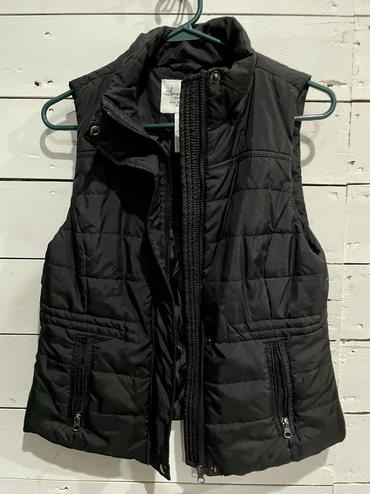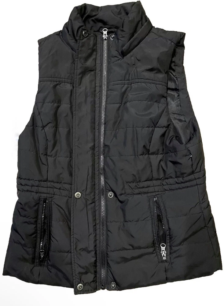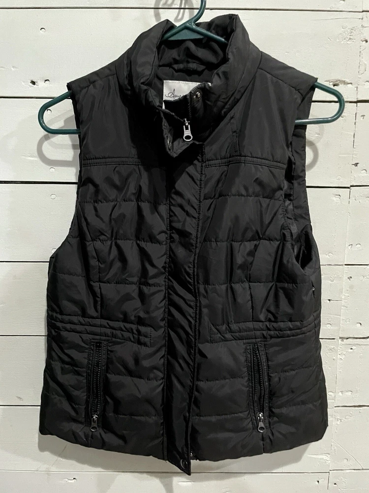 Upgrade your wardrobe with this stylish American Rag Cie women's vest. Made with polyester outer shell material and lined with polyester, this vest is perfect for winter, fall, and spring seasons. It features a solid pattern with black color and has a short length that makes it suitable for travel, casual outings, and workwear. This vest comes with a zip and snap closure, sleeveless design, and pockets for convenience.