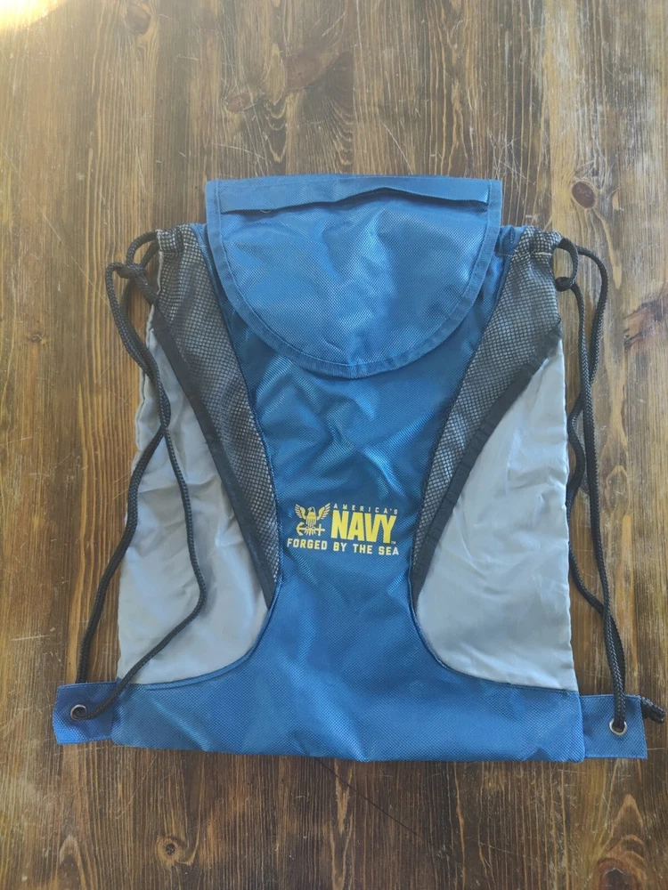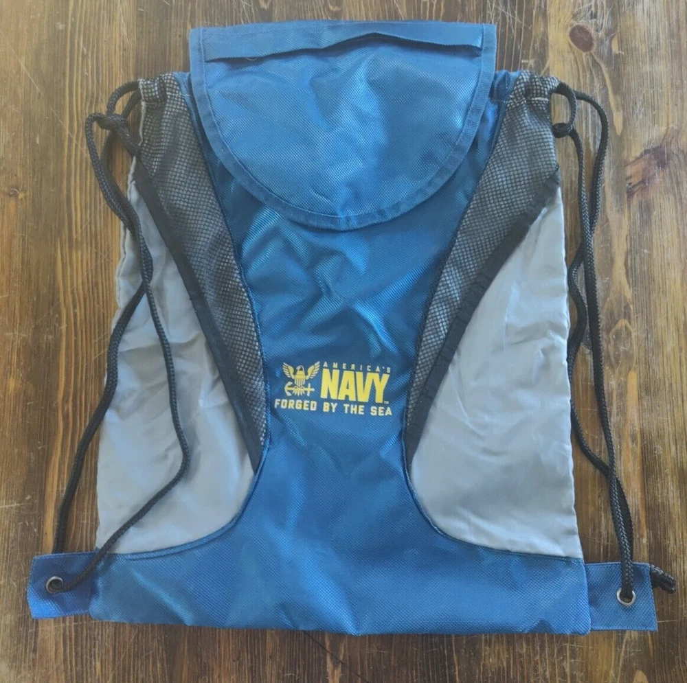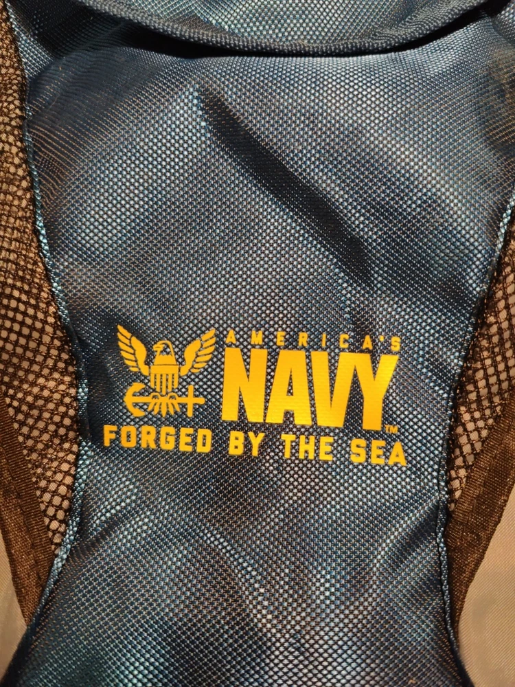 This America's Navy Forged By The Sea Blue Grey Black Small Light Nylon Backpack is perfect for casual occasions and sports activities. The backpack features a solid and mesh pattern, with a blue color and USA/Navy theme.