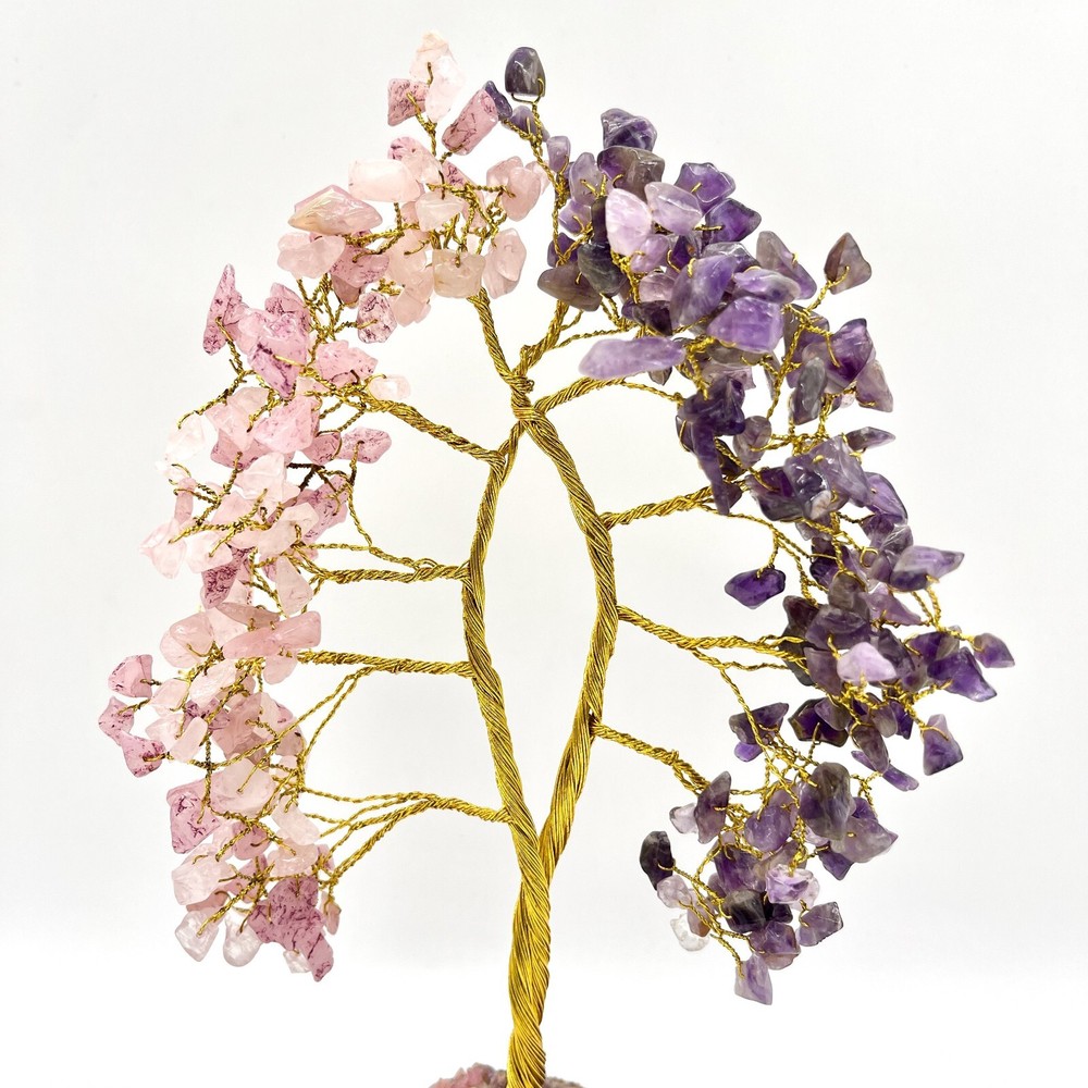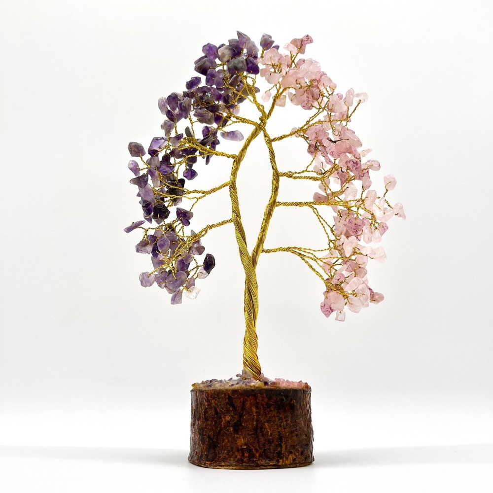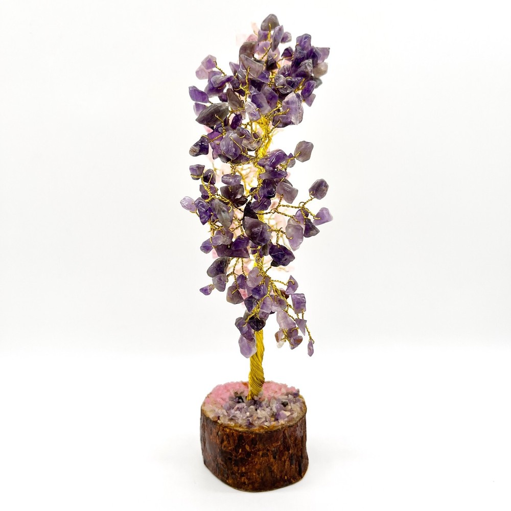Amethys t Rose Quartz Crystal Tree, 300 Chips Gemstone Tree PRODUCT INFO: Approximate Product measurements: 7.1" x 3.9" x 7.1" Rose Quartz Enhances all forms of love. Opens our hearts and encourages us to be tender, peaceful and gentle. Emanates unconditional love and nurturance and helps us attract positive, gentle love into our lives. Teaches forgiveness and tolerance. Zodiac Sign: Taurus. Amethyst is associated with increased nobility, spiritual awareness, meditation, balance, psychic abilities, inner peace, healing and positive transformation. Zodiac Sign: Aquarius & Gemini. PLEASE NOTE: These are Natural Products; therefore, the Colour, Size, Shape, & Weight may Vary. SHIPPING: We process orders in 1 to 2 days. Please feel free to message us if you have any questions! CHECK ALL OUR PRODUCTS AVAILABLE: Main Page https://www.ebay.ca/usr/arocrafts