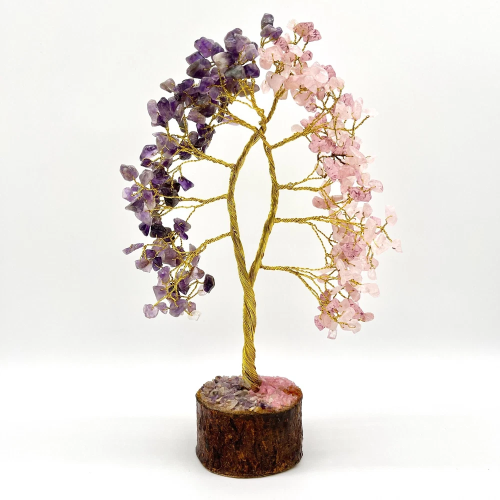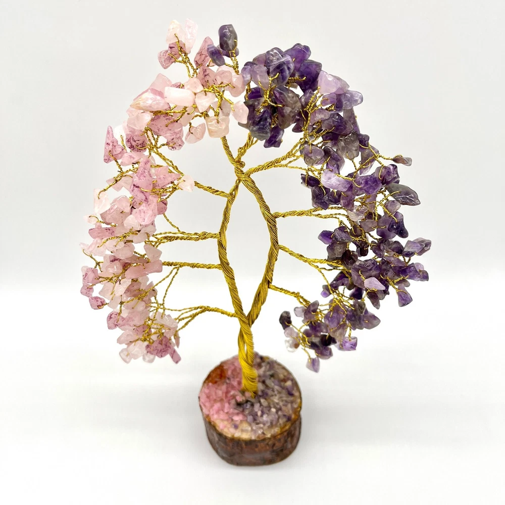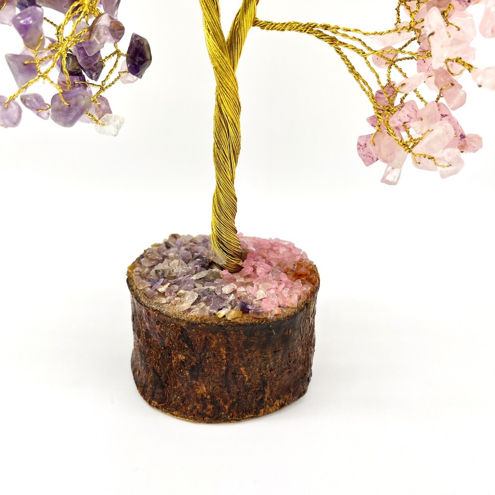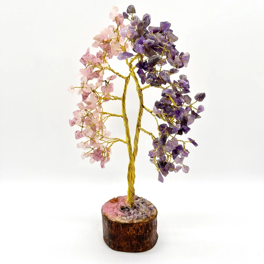 Amethys t Rose Quartz Crystal Tree, 300 Chips Gemstone Tree PRODUCT INFO: Approximate Product measurements: 7.1" x 3.9" x 7.1" Rose Quartz Enhances all forms of love. Opens our hearts and encourages us to be tender, peaceful and gentle. Emanates unconditional love and nurturance and helps us attract positive, gentle love into our lives. Teaches forgiveness and tolerance. Zodiac Sign: Taurus. Amethyst is associated with increased nobility, spiritual awareness, meditation, balance, psychic abilities, inner peace, healing and positive transformation. Zodiac Sign: Aquarius & Gemini. PLEASE NOTE: These are Natural Products; therefore, the Colour, Size, Shape, & Weight may Vary. SHIPPING: We process orders in 1 to 2 days. Please feel free to message us if you have any questions! CHECK ALL OUR PRODUCTS AVAILABLE: Main Page https://www.ebay.ca/usr/arocrafts
