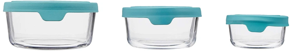 Glass is pre-heated oven safe up to 425 degrees F. Our tempered tough glass is also microwave, freezer, and dishwasher safe, and is up to 100% stronger than regular glass. True seal a glass food storage containers help protect the flavor of food and will not stain or absorb odor - they are also stackable and nestable for easy storage. True seal a lids are designed to prevent spills and leaks, and lock air out while sealing freshness in. Anchor Hocking glass is made in USA. INCLUDES: This Anchor Hocking glass storage set contains (1) 2-cup, (1) 4-cup, (1) 7-cup round food storage containers with airtight mineral blue TrueSeal lids. DURABLE: This glass food storage container set is microwave, pre-heated oven, refrigerator, freezer, and dishwasher safe; airtight lids are BPA Free and top rack dishwasher safe. SAFE: Anchor Hocking glass is healthier than plastic and metal. It will not warp, stain, retain smells, or leach dangerous chemicals into food or drinks. FIVE-YEAR : Backed by a protective limited five-year , these glass meal prep containers promise to impress for many years to come.