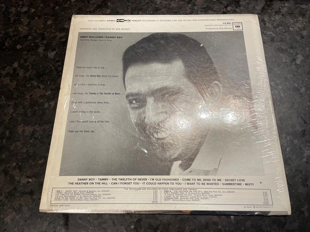 This 1962 LP vinyl record by Andy Williams titled "Danny Boy" and Other Songs I Love To Sing" is a must-have for fans of pop and oldies music from the 1960s. The 12" record, with a black color and a cardboard sleeve case type, features the original cover and has an excellent (EX) record grading, along with a very good (VG) sleeve grading. The vinyl record, released under Columbia record label, has a catalog number of CS 8551 and plays at 33 RPM speed. The lyrics are in English language and the record is in stereo format with a number of audio channels. This record is a great addition to any music collection and is perfect for those who love to sing along with their favorite songs.