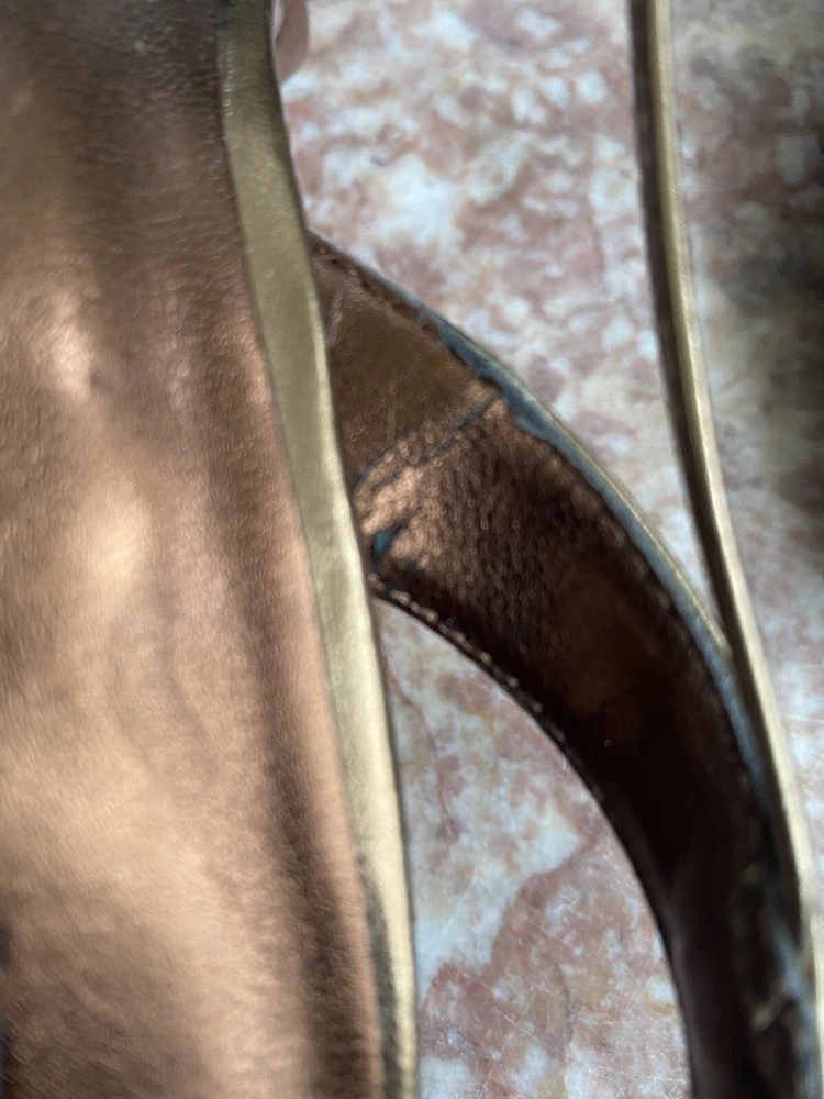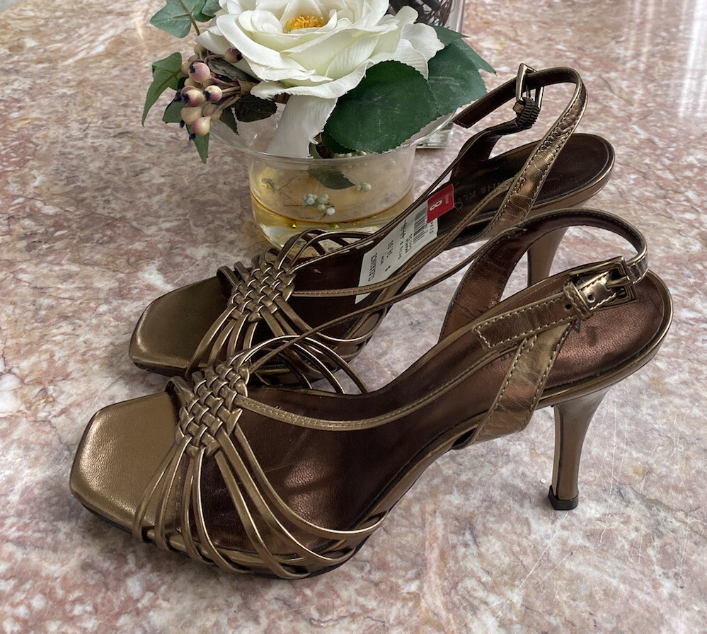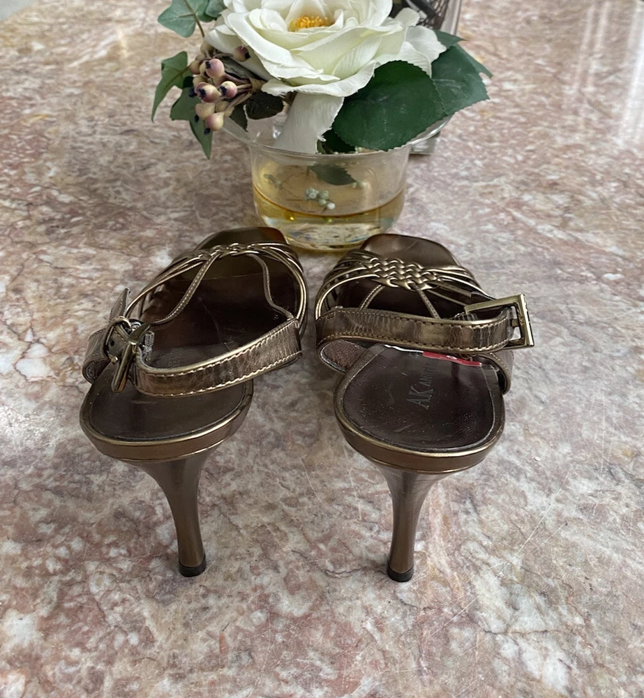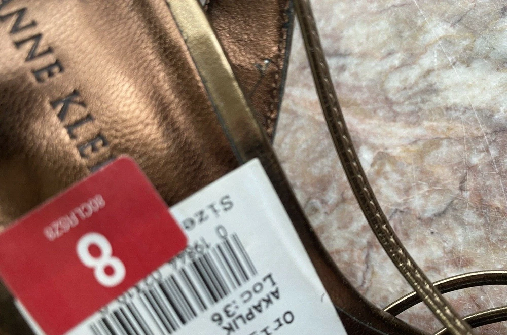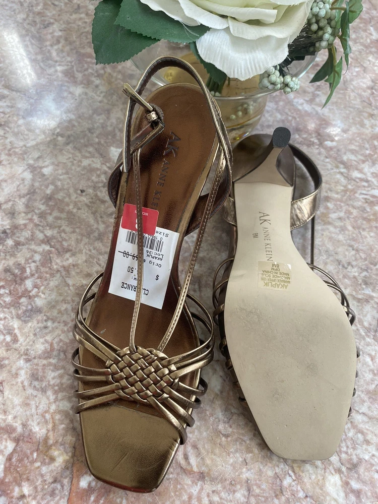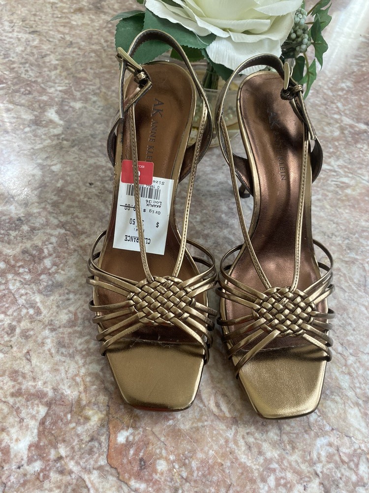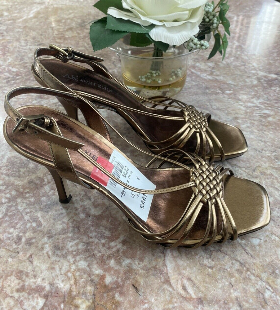 Bd/10M/5522). New Anne Klein Akaplik Women's Gold Patent Leather Open Toe Heel Sandals Size 8M . Upper patent leather straps with slingback, open toe, buckled strap closure, lightly cushioned insoles for comfort, covered stiletto heel 3.5", durable rubber outsoles. Defects: Slight scuffs on the inner lining of the slingback straps. Please is last pictures. Condition: New without box, please ZOOM and ENLARGE pictures to see the exact condition as pictures show details of the condition of the item. Any faults seen in picture is part of the condition of the item. Tones may vary depending on the device used to view. Please also see and click on “About this item”/item specifics for more information on item. Happy Shopping! Check out other items in our store. Thanks for supporting our small business!