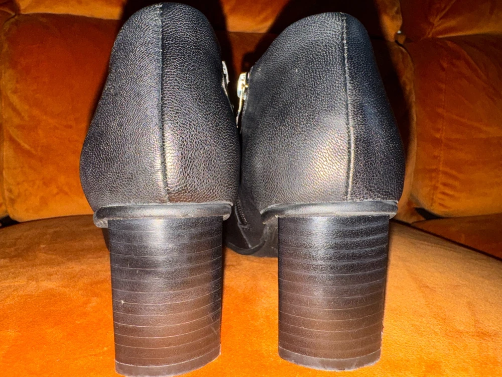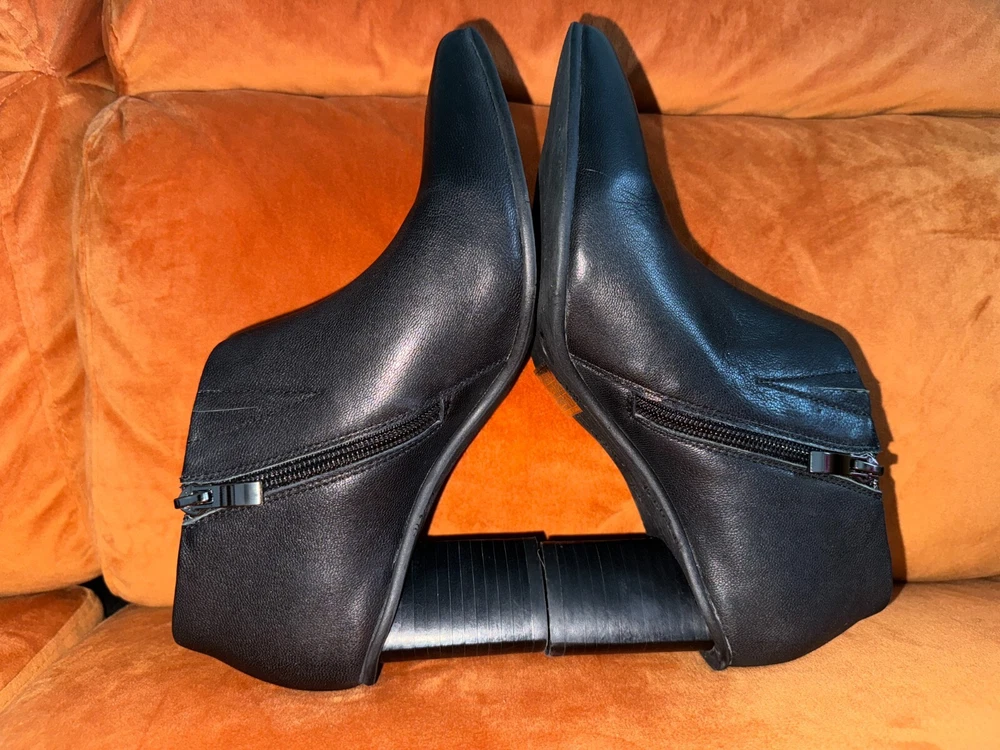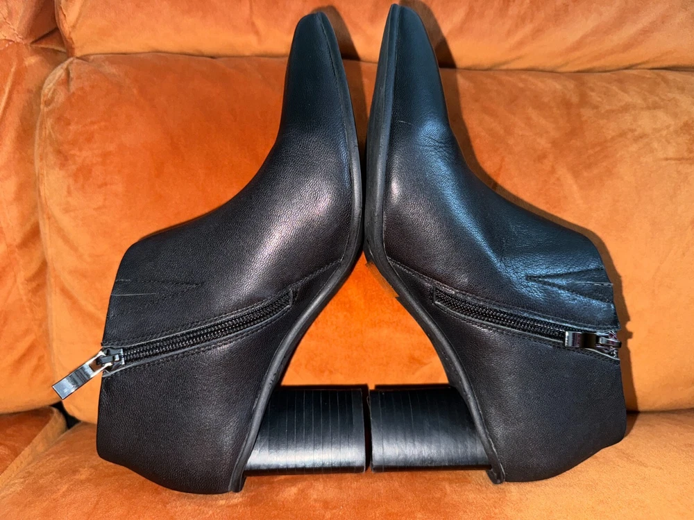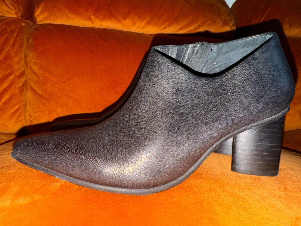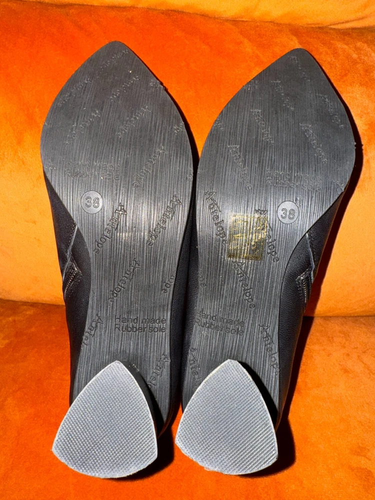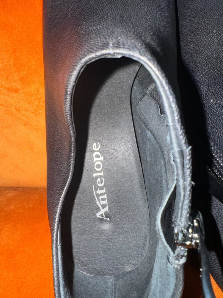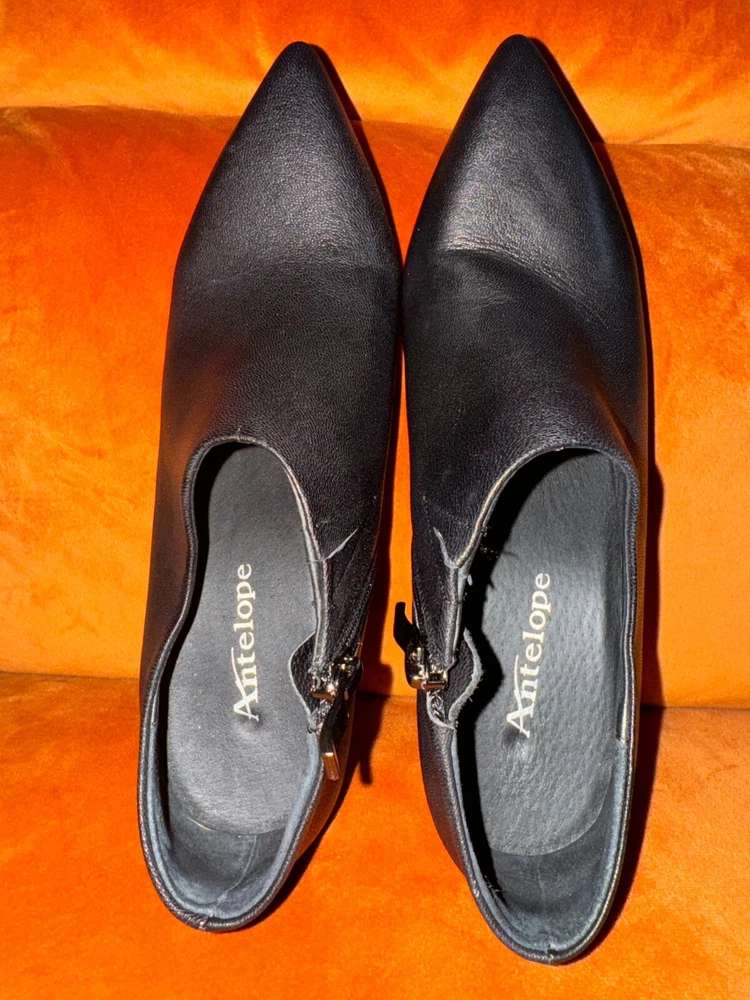 Elevate your shoe collection with these stylish Antelope Hollis Black Booties. These pointed toe heels have a 3" lift and are made of high-quality leather. The sleek black color and bootie style make them perfect for any occasion. The brand Antelope is known for its exceptional quality and attention to detail. These heels are no exception, with their comfortable fit and durable construction. Add these shoes to your wardrobe today and step out in style. Details & care Punctuate any outfit with this pointed-toe bootie fashioned with an easy side-zip closure and lofty block heel. 3" heel Inset side-zip closure Cushioned footbed Leather upper and lining/rubber sole Imported Item #10337698 Glad to answer all questions. Smoke-free home. No returns. Thanks for looking!