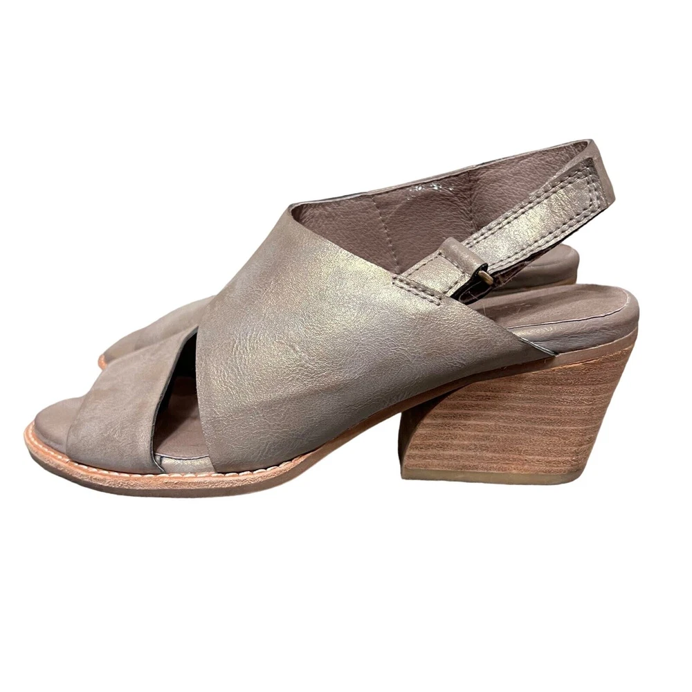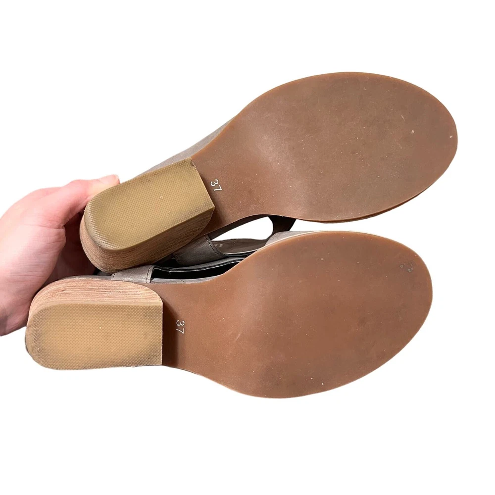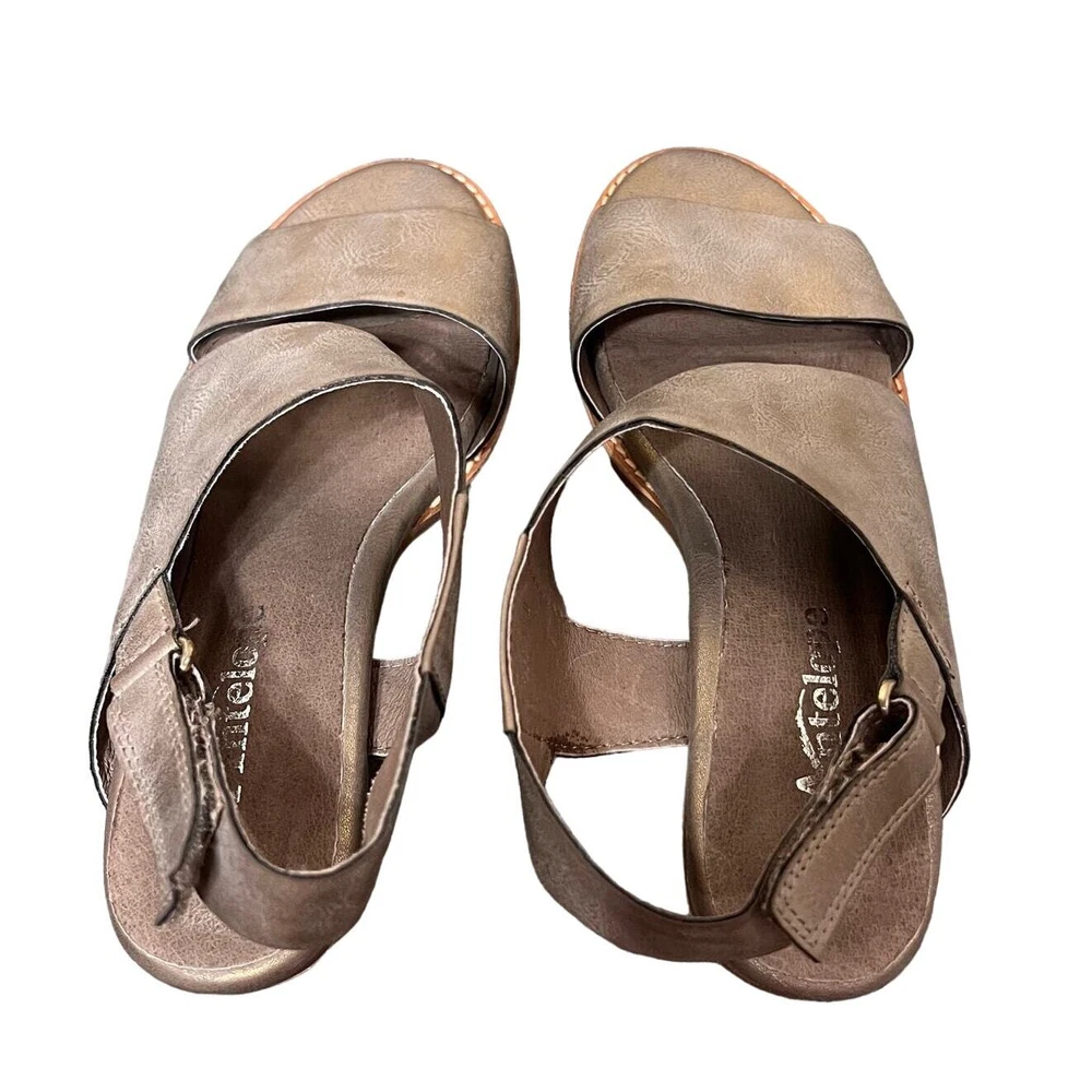 Antelope Spiral Cut Mauve Gray Leather Wood Block Arc Heel Sandals Size 6.5. Features adjustable velcro ankle buckles. Tags: euc, heeled sandals, shoes Great preowned condition. No notable flaws. Size EU 37. Equivalent to US 6.5.