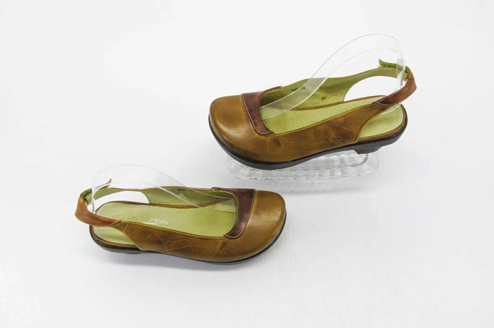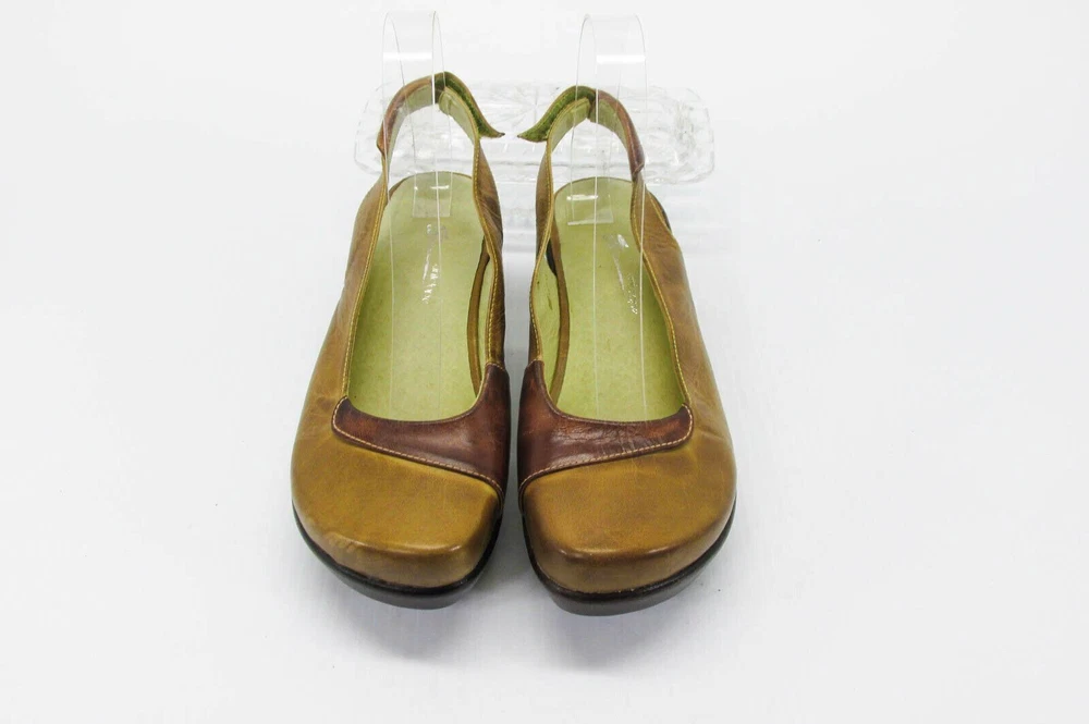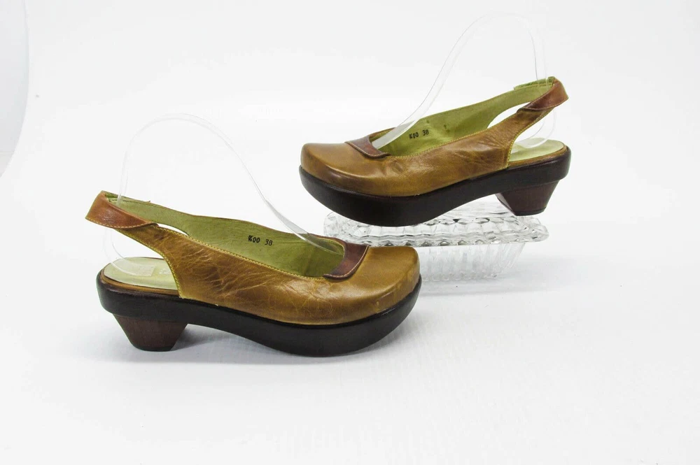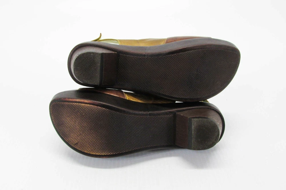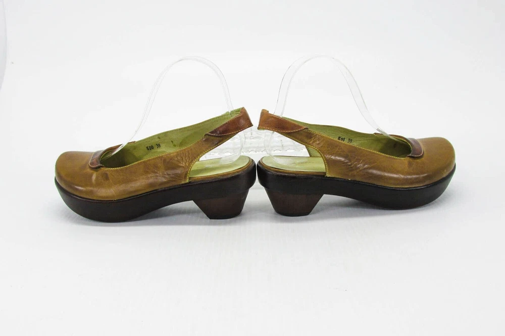 Size - 7M (EUR 38) Color - Brown Material - Leather Heel Height approx - 2-1/4" (front 1") Insole Length approx - 9-3/8" Outside Length approx - 9-3/4" Outside Width approx - 3-3/8" PRE-OWNED - no rips/tears - insoles/footbed may/may not have visible toe/footprints - all pre-owned shoes will have varying degrees of scuffing which may/may not include same or different color marks, scratches, creases, nicks, dings, dents - view picture (use zoom) to determine degree of wear on soles - pictures are of the actual item and are considered part of the condition statement (view all pictures using the zoom feature) - color tones may vary depending on your monitor/device settings SEE PICTURES FOR VISUAL CONDITION & CONDITION OF SOLE (USE ZOOM) Buyers, please note: to combine multiple items, please use shopping cart. W E HAVE THOUSANDS OF SHOES IN OUR STORE Listing and template services provided by inkFrog