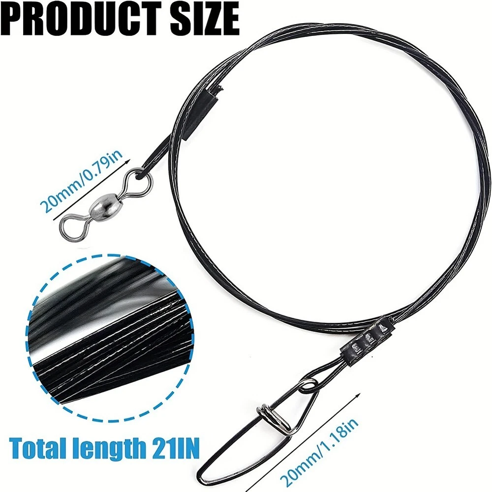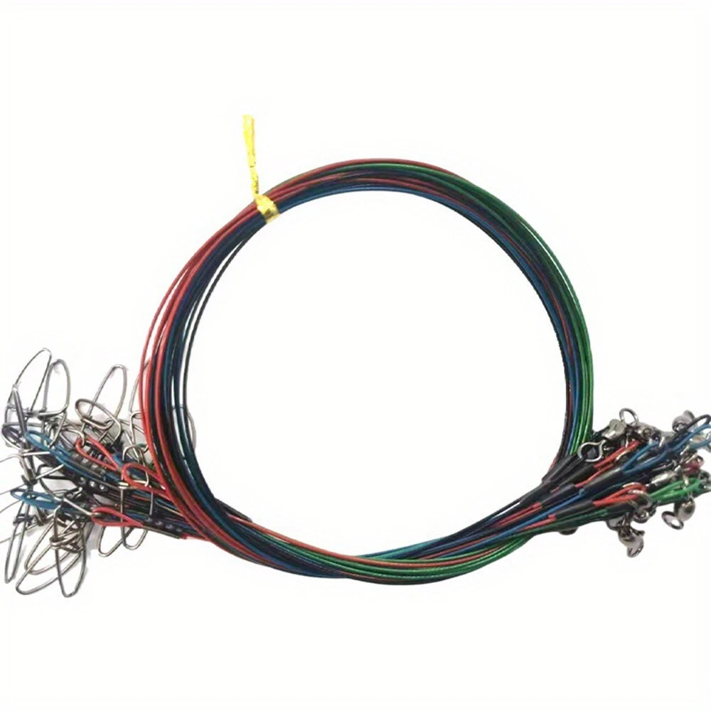Anti Bite Steel Fishing Wire for Saltwater Fish 1x7 Nylon Coated 125lb DESCRIPTION Features: *Made of high-quality materials. * Tested: 125 pounds, length 19.7 inches, diameter 1mm, available in four colors: black, green, blue and red. * Heavy duty 1x7 stainless steel wire, nylon coated, anti-bite and anti-corrosion, protects fishing line from breaking due to wear and tear, high quality locking snaps and swivels help maintain authentic bait presentation. * end is equipped with a swivel joint to better display the bait, and the buckle on the other end provides more convenience for bait replacement, for use in saltwater and freshwater. * Offset the instantaneous pulling force that may occur after catching a fish, act as a shock absorber, release the drag force of the fish, prevent the main fishing line from being bitten by fish, and protect your main fishing line from damage. Specification: Material:High-carbon steel. Color:as the picture shows. QTY:20pcs. Size:Length:21in. Weight:90g. *Product Name:Steel Fishing Wire Package Content: 20*Steel Fishing Wire. Note: 1 The real color of the item may be slightly different from the pictures shown on website caused by many factors such as brightness of your monitor and light brightness. 2. Please allow slight manual measurement deviation for the data. POLICES Shipping Payment WARRANTY We only ship to confirmed ebay Order addresses. Please comfirm that your Order address is in line with your shipping address. Please kindly note that the c ombined shipping is not provided because the shipping fee is calculated by weight. Also, the each additional item means exactly the the same color and size. It takes about 7 -15 working days to US; about 10-30 working days to other countries. Transit time may be a little delayed because of the bad weather and customs inspection . If you do not receive your item within 30 working days since payment finished, please contact us immediately for further assistance. Payment must be completed within 5 days. If you have any problems about payment, please contact us via ebay message. We strive for 100% customer satisfaction! Positive Feedback is very important to us. If you have any questions, p lease feel free to contact us via "Ask seller a question" . We will reply your email within 24 working hours.
