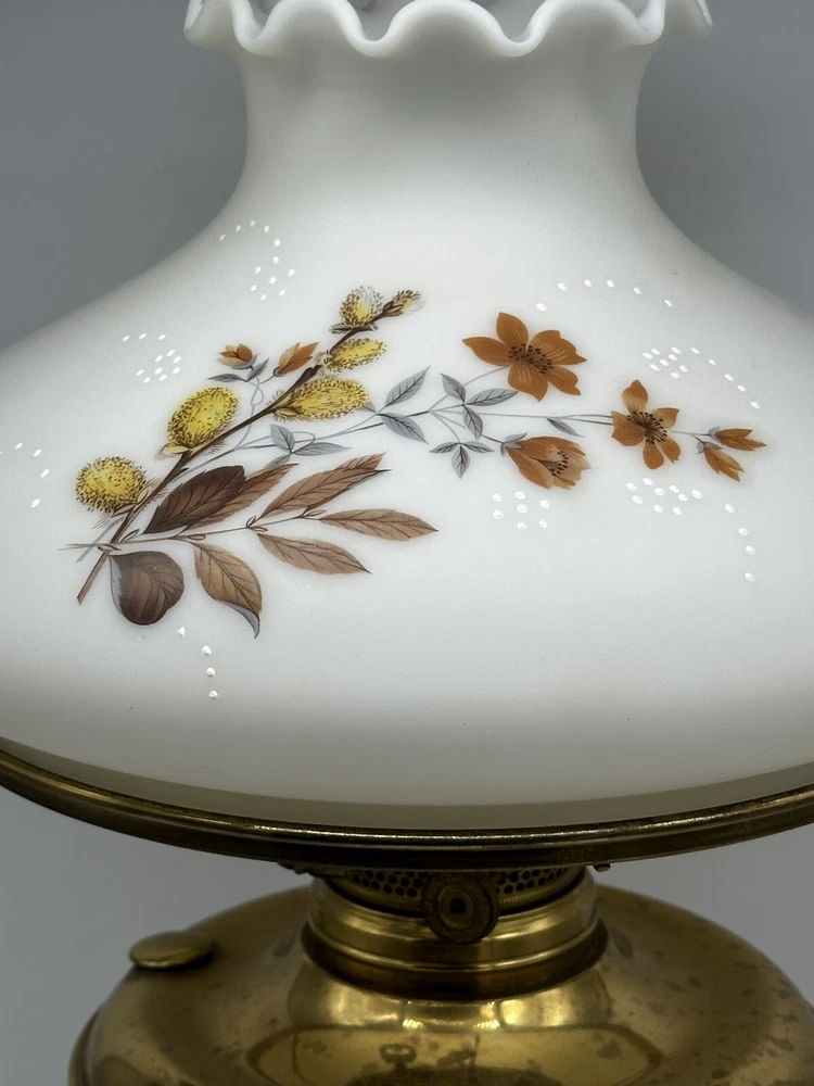 This antique ABCO Rochester oil lamp has been converted to electric and features a beautiful brass body with a hand-painted shade. The lamp has a classic Victorian style and is perfect for collectors of vintage lighting. With a knob control and a power source of electricity, this lamp is functional as well as stylish. The lamp is a unit type item that is 12 inches in height and has a gold cord color. It is an original piece from the 1850-1899 era and has a SK6812 LED string/strip type. This antique lamp is a great addition to any home decor - ➡️ please look at all pictures there is some discoloration on the lamp it has never been cleaned, I am not sure if cleaning with a brass cleaner would help⬅️Sold as is