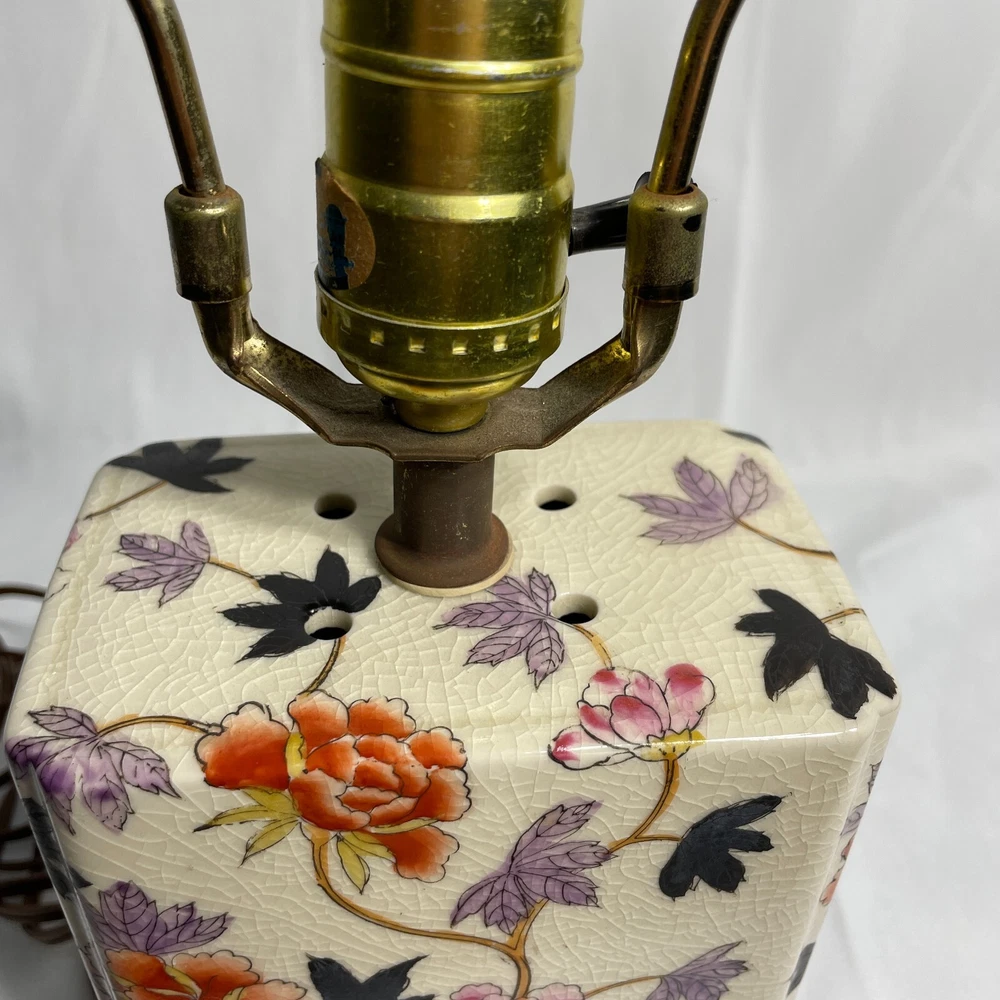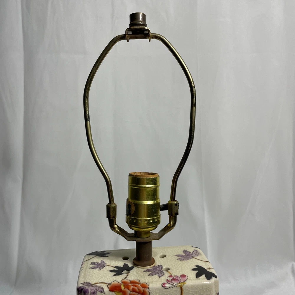 $ 47.52Majolica Hand Painted Porcelain Brass Table Lamp No Shade