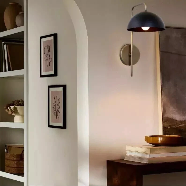 Mid-Century Modern Brass Wall Lamp - Handmade Blackened Brass Sconce with Black Aluminum Shade Add a touch of mid-century charm to your home with this exquisite brass wall lamp. Meticulously crafted by hand, this sconce embodies the iconic design principles of the mid-century modern era. Made from solid brass with an oxidized antique blackened finish, this wall lamp boasts a timeless elegance that complements any decor. Features: Premium Craftsmanship : 100% handmade from solid brass with a durable, protective lacquer finish that will naturally patina over time. Sophisticated Design : Black powder-coated lampshade, made of hand-spun aluminum, brings a sleek, modern contrast to the brass body. Versatile Usage : Ideal for various spaces, whether used as a living room reading light, a bedside lamp, a hallway accent, or a task light. Hardwired Installation : Designed for a hardwired setup. If you prefer a plug-in version with an on/off switch, please contact us. Specifications: Wall Canopy Diameter : 5 inches Overall Depth from Wall : 12 inches Height : 15.7 inches Shade Diameter : 7.9 inches Socket Type : Standard E27 (fits E26 medium base), 110V-240V, max 60W (bulb not included) Elevate your space with this distinctive, high-quality lighting piece that marries form and function in true mid-century style.