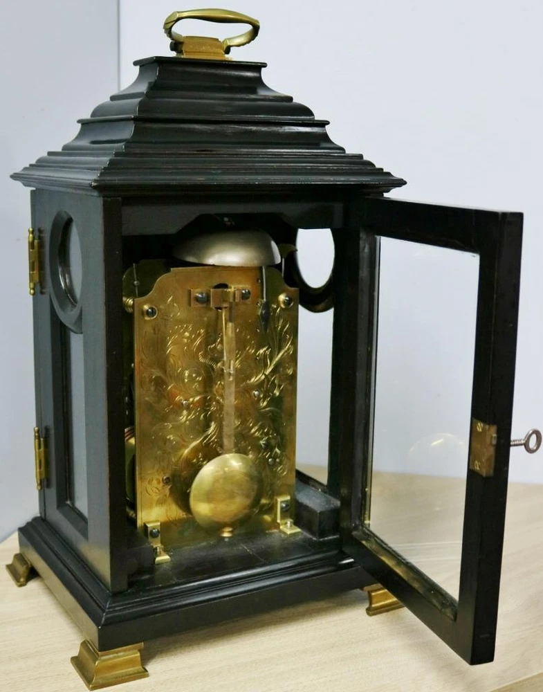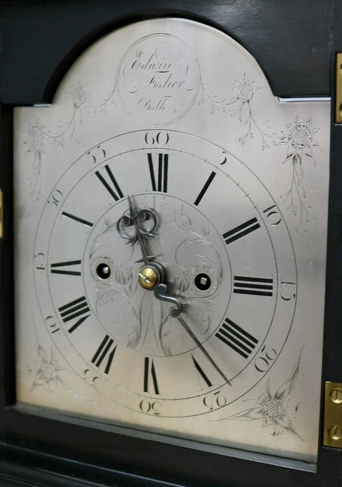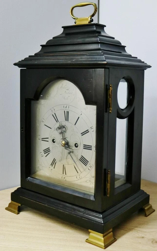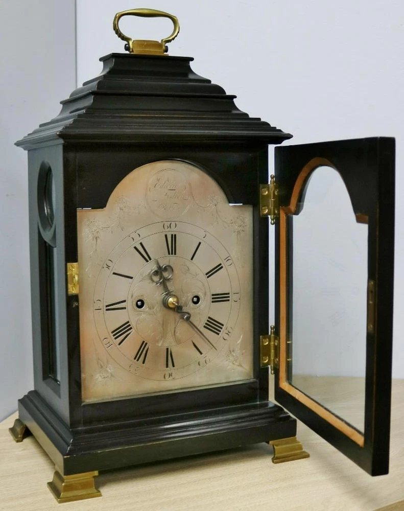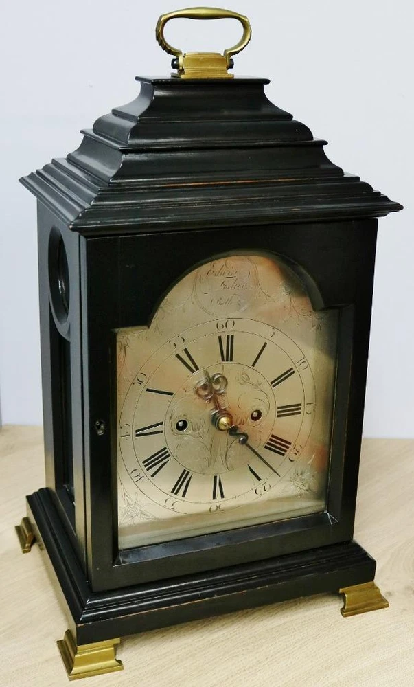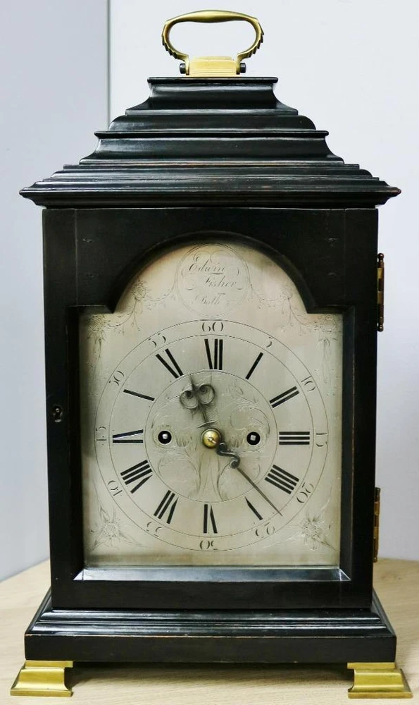 Quality early 19th century twin fusee bracket clock with stunning patina and colour to the wonderful ebonised case dating to C1820 - 1840 The case is made of solid wood with this stunning patina to the ebonised finish which gives this absolutely amazing display finish The clock has a stepped top case design simple display look, it has a glazed front door which protects the dial and a glazed back door which protects the movement with working lock and key Case is in excellent original condition for age and looks stunning on display with a good age patina with brass handle to top Silvered arched dial signed by the maker Edwin Fisher of Bath who dates to the early 19th century Engraved Roman numerals & matching original steel hands Dial is in excellent original condition and looks fantastic English 8 day twin wire driven bell striking movement with original anchor escapement and engraved backplate and shouldered plates all expected from a top quality maker The movement has just been professionally serviced and is in full working order keep good time and striking as it should on the hour Original Pendulum and a new brass winding key The clock measures 18 inches high x 10.5 inches wide x 8.5 inches deep Antique English Edwin Fisher Bath Ebonised Twin Fusee Striking Bracket Clock Antique English Edwin Fisher Bath Ebonised Twin Fusee Striking Bracket Clock Description Main reasons why you should purchase your antique clock from Times & Chimes Ltd !!! We understand buying an antique clock is a big decision and we are very well experienced in current market's as well as fully trained and experienced horologists. We have many years experience in buying and selling original antique clocks which are carefully sourced and many from private collections and we know exactly what buyers expect when purchasing such a prized possession and a future investment. Here are some of the main reasons why you should buy your antique clocks from us for complete piece of mind 1 - We offer the very best customer service before, during and after the sale 2 - Fully trained and hugely experienced horologists 3 - Six month return to base warranty on mechanisms 4 - All our original antique clocks are of high quality and carefully sourced 5 - Every clock we sell are tested for a minimum of 1 week before being offered for sale 6 - We have earned a consistently excellent track record of sales with 100% Feedback 7 - All our items are professionally packed and dispatched promptly 8 - All clocks are sent with world leading couriers on a priority service with full online tracking PLEASE NOTE: I have just received some excellent quality bracket clocks from a private collection all of which have been well looked after all of which will be listed over the next few weeks. Some excellent quality bracket clocks please keep your eyes open over the next few months Description Quality early 19th century twin fusee bracket clock with stunning patina and colour to the wonderful ebonised case dating to C1820 - 1840 The case is made of solid wood with this stunning patina to the ebonised finish which gives this absolutely amazing display finish The clock has a stepped top case design simple display look, it has a glazed front door which protects the dial and a glazed back door which protects the movement with working lock and key Case is in excellent original condition for age and looks stunning on display with a good age patina with brass handle to top Silvered arched dial signed by the maker Edwin Fisher of Bath who dates to the early 19th century Engraved Roman numerals & matching original steel hands Dial is in excellent original condition and looks fantastic English 8 day twin wire driven bell striking movement with original anchor escapement and engraved backplate and shouldered plates all expected from a top quality maker The movement has just been professionally serviced and is in full working order keep good time and striking as it should on the hour Original Pendulum and a new brass winding key The clock measures 18 inches high x 10.5 inches wide x 8.5 inches deep Summary This is a perfect investment clock and a beautiful display piece. Looks absolutely fantastic wherever it is displayed and a true talking point of any room. Exceptional clock which will only grow in value and one of the best ones i have ever had the pleasure to offer for sale and you wont find one quite like this for a while Important Please Read: ALL antique clocks after transport no matter how well they have been looked after or serviced may require setting up, adjustments and setting into beat when you receive them and i always recommend a professional or an experienced clock person to do this correctly for you. Unfortunately with some clocks it is not a matter of unpacking them, putting the pendulum on and away they go, some clocks will need the extra adjustments and setting into beat so please remember you may require a professional for initial setup before bidding. Most clocks will be ok and will not need any additional adjustments but please bear in mind this may not be the case. Any clocks returned because of setting up issues or adjustments needed after transit then a fee will be applicable. For your piece of mind we test all our clocks here before they are sent out and any issues are either sorted or described in the add, the clock will not have any problems unless stated in the add as they are tested vigorously before sending. Please read my full terms and conditions by clicking on the returns tab above. Good luck and happy bidding Click images to enlarge Payment PayPal Cheque Bank Transfer Cash on collection You are more than welcome to personally collect any item free of charge Shipping All my items will be packed professionally Shipping prices include professional packaging materials, boxes, and priority service I will only use professional couriers which will provide a full tracking number which can be tracked online Please remember to check with your