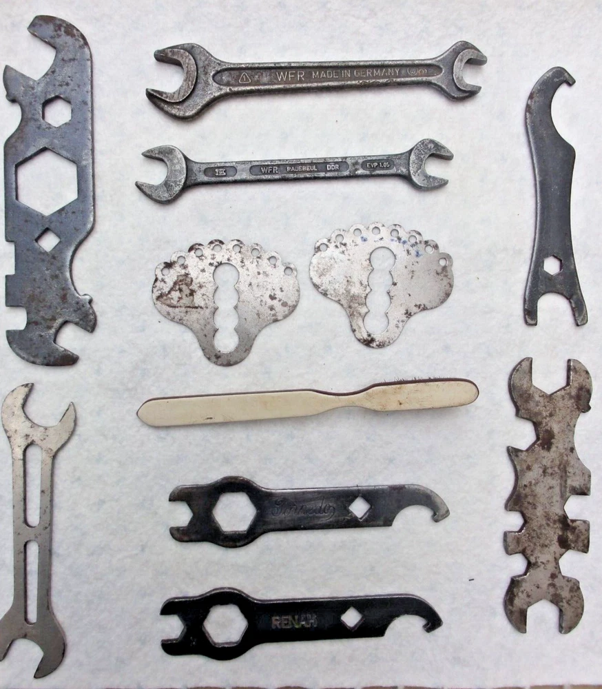 Antique RARE NSU Cycle Box TOOL BAG TOOL POUCH SADDLE BAG TOOLS TISCAWE ?? Eleven Old Tools inside: Torpedo,WKR etc Age Signs See Enlarged Pictures