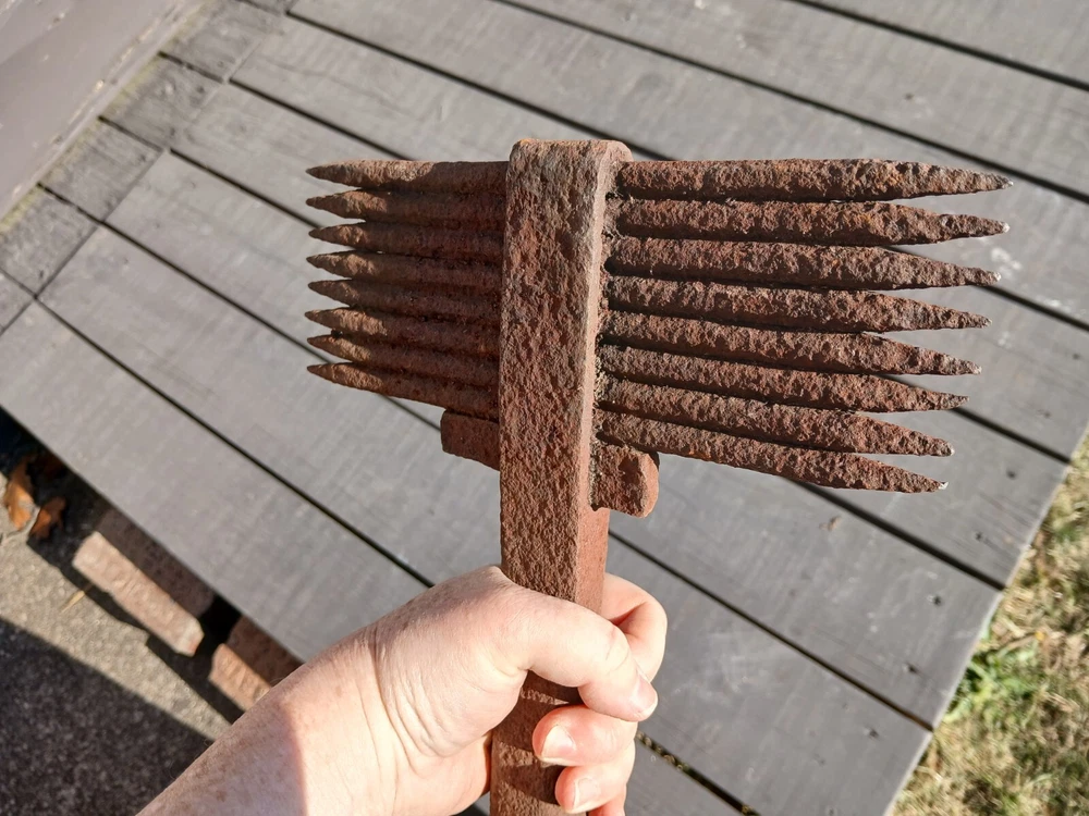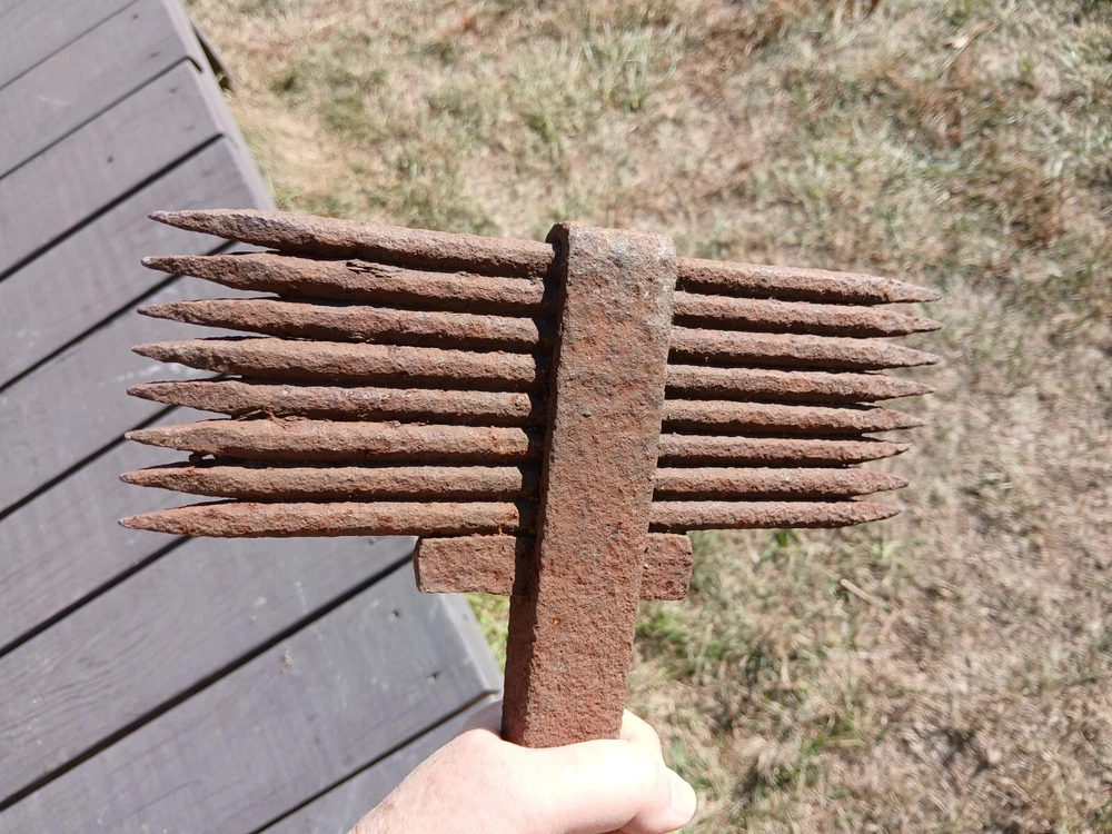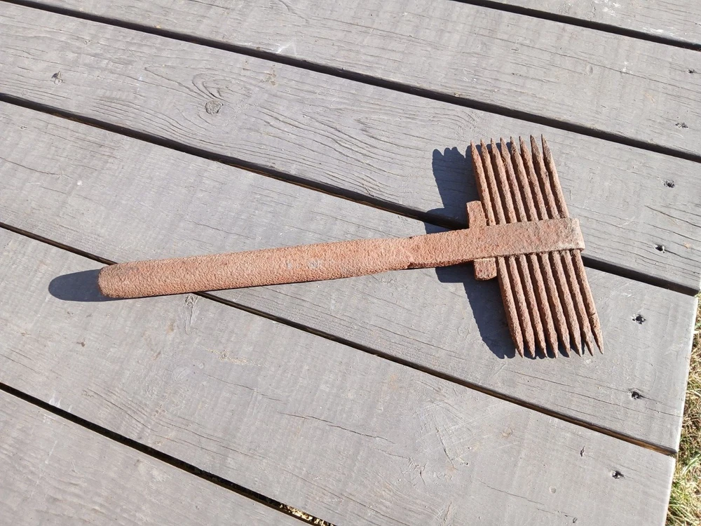 Antique Stone Masons Crandall Hammer Dressing Hand Tool Rare Primitive A rare primitive antique stone mason's Crandall hammer tool. This is a masonry tool in the Bush Hammer family which has removable spikes and or teeth that are held in place by a wedge. A 19th century stone masons hammer used for dressing soft building stones. Solid steel handle. Handsome tool for dressing soft building stones. 17.50 inches long overall. Eight mounted 8.50 inches long spikes. Please note all photos for they too are a part of our description. Inv. ee Also please note local pick up is available. SHIPPING We will combine purchases upon requests. We ship most all of our items USPS. We also Ship International. We are also professional packagers. We do pack with air bags, newspapers and other types of light packaging fillers. Insurance is your choice but we cannot be held liable for damaged or lost items if they are not insured. Also, all our items are not guaranteed for their original purposes. We promise to treat your item with care and respect when packaging for transport. Nearly all of our items are from a secondary market. We make every effort to describe any flaws or damage. Please note all photos and contact us with all questions before purchasing our inventory. We never intend to misrepresent our listings. If you select local pick up, please call us to set an appointment time. Please pick up your purchases within thirty days unless other arrangements have been made. Note: Funds need to be cleared before item(s) are picked up. If your item(s) you purchased from sugarcreekantiques1 have not been picked up within sixty days, we have the right to resell said item(s) and the buyer forfeits all payment(s) made on said items. NOTE This item is also available for pick up at our shop by you or your chosen shipper. We always suggest getting several quotes because rates can vary from one shipper to another. You can google antique furniture shipper and many companies are available. Rules For Local Pick Up of Items In Our Place of Business and or Outsourcing Shipping. Funds need to be cleared before item(s) are picked up. If selecting Local Pick Up please call to set an appointment time. All items will need to be picked up at our business site within 30 days unless other arrangements have been made. Also, you can choose your favorite Shipping Agent or use the ones our customers have used. Please pay your Shipping Agent the negotiated shipping cost. Listed below are a few of the Freight Forwarders our customers have used: USHIP, Timothy Terhune, (VT), Transitsystems (CA), Plycongroup (NY, Canada) Local Pick Up Items will be held for 60 Days. After 60 days, if an item(s) you have purchased is not picked up, we have the right to resell said item(s) and the buyer forfeits all payment(s) made on said items. PLEASE NOTE: Shipping and handling is always disclosed in the auction before you bid. So by bidding, you agree the amount is acceptable and warrants a 5 star feedback. INTERNATIONAL BUYERS: We only ship to other countries via the eBay Global Shipping Program. Import duties, taxes, and charges are not included in the item price or shipping cost. These charges are the buyer's responsibility. Please check with your country's customs office to determine what these additional costs will be prior to bidding or buying. RETURNS: We will accept returns if we have described the item incorrectly. The refund is contingent on: The item(s) must be repackaged in the same box and in the same manner we shipped it. When we receive said package, item(s) must not be damaged and it has to be the original item(s) we sent to the buyer. Buyer will pay for the returned package to be sent to our address. Welcome to Sugarcreek Antiques All of our items we sell on eBay are antiques and collectibles. They range from the early primitives, eclectic, downright weird, to today's collectibles. You probably will find almost anything you need right here in our store. We are located in the largest settlement of the Amish in the world. We reside in the beautiful Tuscarawas Valley. It is a rich rolling countryside and it is one of the larger tourist attractions. People from all over the world visit Sugarcreek and the surrounding countryside to view our Amish Swiss German ancestry. Please add us to your list of favorite sellers.