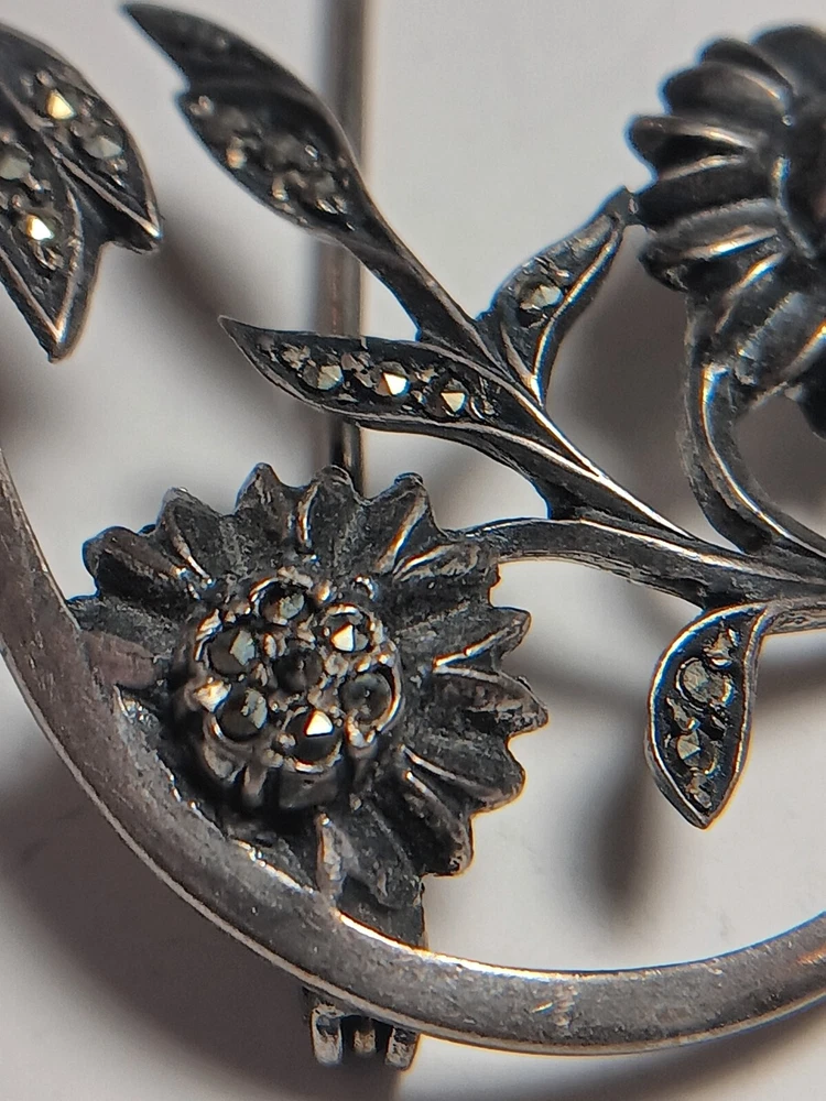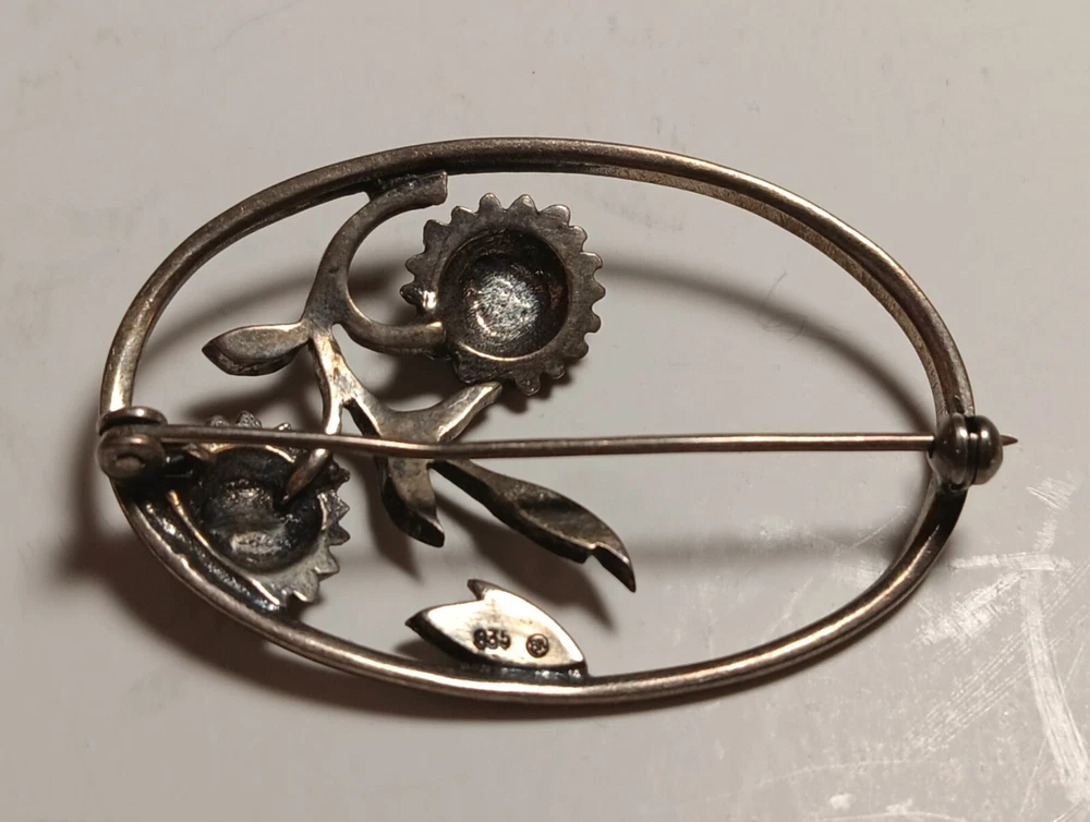 Department:WomenColor:silver and grayMain Stone:HematiteMetal:SilverMain Stone Shape:RoundEra:Victorian (1837-1901)Original/Reproduction:OriginalMetal Purity:835Main Stone Color:GrayVintage:YesType:BroochBrand:BRShape:oval and flowersMaterial:StoneAntique:YesSecondary Stone:noneJewelry Department:Fine