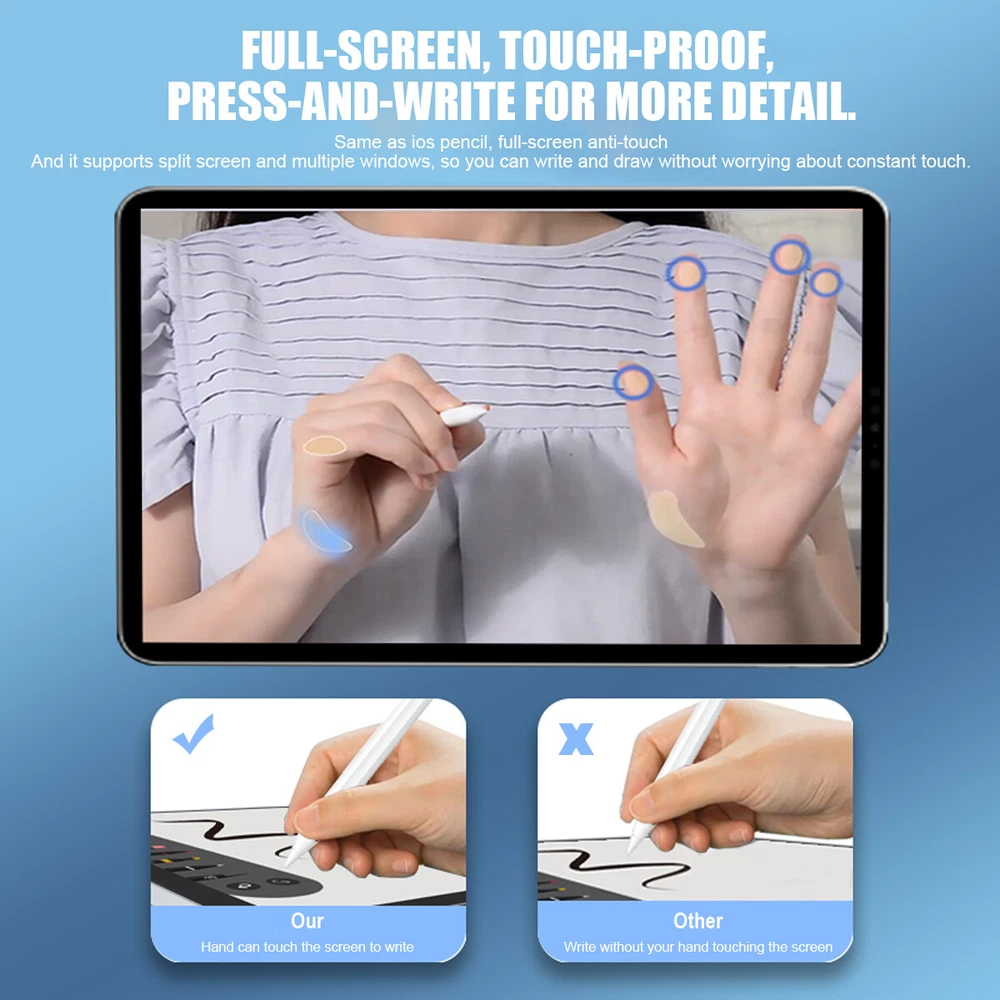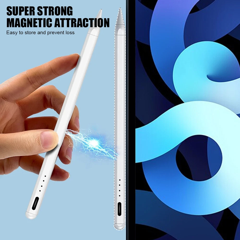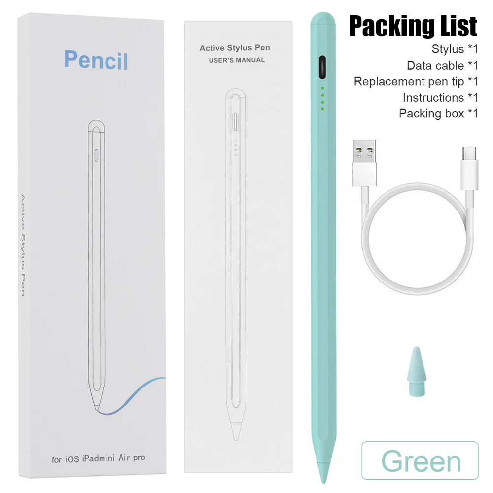 eBay eBay Product Description Description: If you are someone curious about or in need of a stylus pen for drawing, writing, or note-taking, this is an excellent value at its price. This stylus pen with lndicator light and smart touch switch, can be rechargeable by Type-C cable.Our Pencil comes with 1 durable and usable, removable & replaceable pentips which made of high quality POM materials,friendly to your iPad screen and easier to replace. No scratching the screen, no lag, no skipping, and more freedom and naturally to write and working.Take it as the gift to your love, family members.It won't let you down. Feature: 【 Compatible with iPad Models 】 This stylus pen compatible with 2018-2022 iPad & iPad Pro. Such as for iPad Pro 6th/5th/4th/3rd,iPad Air 5th/4th/3rd,iPad 10th/9th/8th/7th/6th,iPad Mini 5th/6th.Not compatible with 2017 and earlier Apple iPad, and also does not support for Android, Microsoft devices. Please confirm whether your model is compatible before buying. 【 Smart Touch Operation & Extra Long Standby 】 No Need Bluetooth or any Apps.Double touches on the top to start or stop the stylus pencil.Built-in 1 00mAh, battery provides 8 hours active use and long standby time, for only 20 minute charging by a USB-C cable. 【 Stylus Pen With Palm Rejection 】 You can rest your palm comfortably on the screen when writing or drawing by the upgraded active pencil with palm rejection. No need to wear gloves. This technology provids you with a more smoother,naturaller writing/drawing experience. 【 Magnetically Attach 】 This rechargeable stylus pen can be attached to the side of iPad by the powerful magnetic, but does not support magnetic charging. More portable, easier to organize,No more rolling and lost. 【 Perfect Precision 】 This Stylus Pen for iPad has an ultra-fine 1.5mm tip which allows precise strokes and easier to write small characters. No scratching the screen, no lag, no skipping. Not easy to break! Compatible Models: Stylus Pen Compatible with apple iPad (6th,7th,8th,9th,10th generations) It compatible with iPad 10th (10.2-inch) A2696/A2757/A2777 It compatible with iPad 9th (10.2-inch) A2602/A2604/2603/2605 It compatible with iPad 8th(10.2-inch) A2270/A2428/A2429/A2430 It compatible with iPad 7th(10.2-inch) A2197/A2198/A2200 It compatible with iPad 6th (9.7-inch) A1893/A1954 It compatible with iPad Pro 3 (11-inch ) A1980/A2013/A1934/A1979 It compatible with iPad Pro 3 (11-inch ) A2228/A2068/A2030/A2231 It compatible with iPad Pro 3 (11-inch ) A2377/A2459/A2301/A2460 It compatible with iPad Pro 3rd (12.9-inch) A1876/A2014/A1895/A1983 It compatible with iPad Pro 4th (12.9-inch) A2229/A2233/A2069/A2232 It compatible with iPad Pro 5th (12.9-inch) A2378/A2461/A2379/A2462 It compatible with iPad Mini 5th (7.9-inch ) A2133/A2124/A2126/A2125 It compatible with iPad Mini 6th (8.3-inch) A2567/2568/2569 It compatible with iPad Air 3rd (10.5-inch) A2152/A2123/A2153/A2154 It compatible with ipad Air 4th (10.9-inch) A2316/A2324/A2325/A2072 NOTE: If your iPad Bluetooth connection uses the Apple Pencil, please clear the Apple Pencil from the Bluetooth list and turn off the Bluetooth function. This will prevent the stylus from being used with the iPad. Specification: Material: Aluminum Alloy Color:White Pencil Diameter Size: 9mm Pencil Nib Size:1.5mm Pencil Length: about 16.5cm/6.5" Charging Port:USB-C Battery Capacity:140mah Charging time: 20-30 minutes Charging head use: 5V 1A or 5V 2A (Do not use high power fast charger, will burn out) Continuous Working Time: 4-8 hours Compatible with most notes & drawing software in the APP Store. Indicator light introduction: When charging: display the current power level and blinking Fully charged: all four lights on When working: green light and display the current battery level Power saving mode: 30 minutes without use automatically switch off Package Included: 1* Stylus Pen 1* Replacement Tips 1* USB C Charging Cable 1* User's manual 1* Storage Box