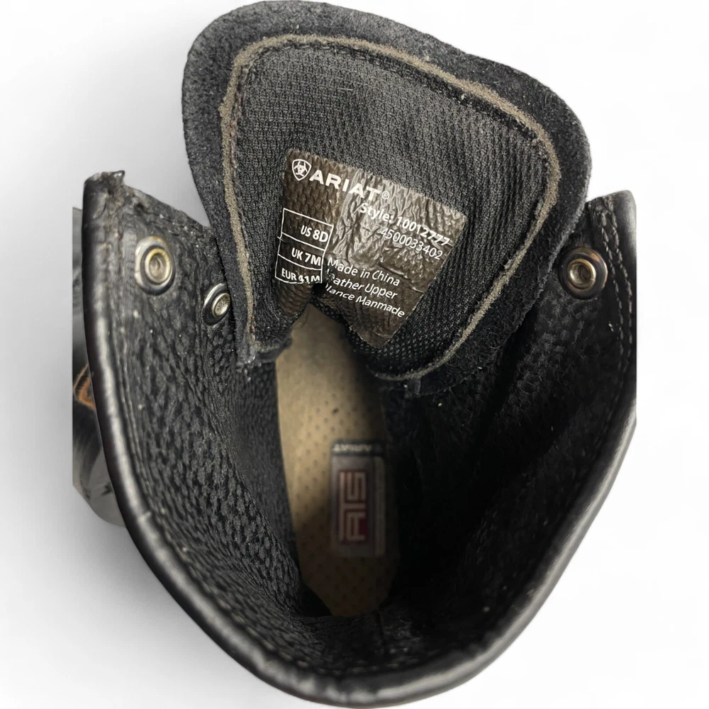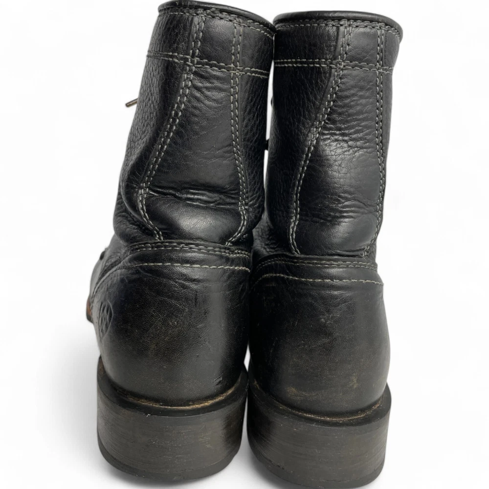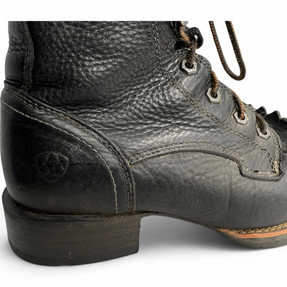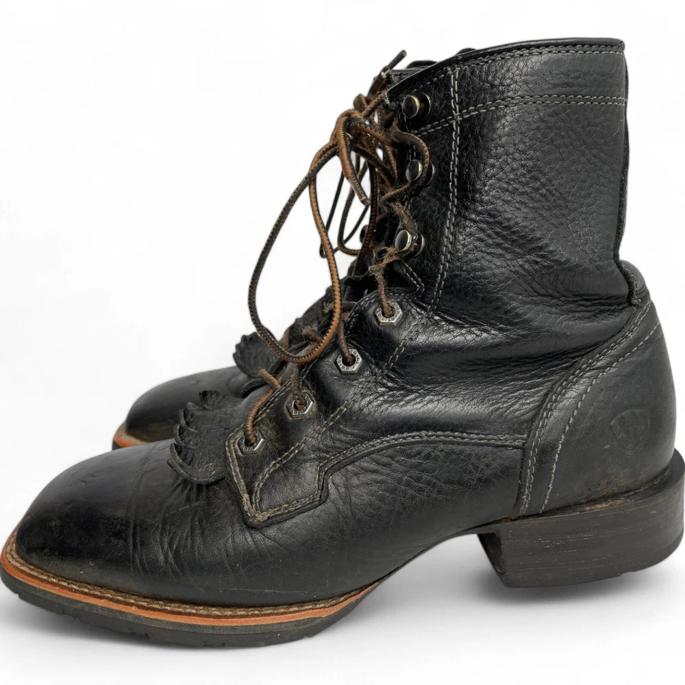 Toe Shape: Square Toe Product Line: Ariat Hybrid Lacer Brand: Ariat Closure: Lace Up US Shoe Size: 8 Style: Work Theme: Biker, Cowboy, Western, Work Type: Boot Pattern: Solid Features: Comfort Upper Material: Leather Shoe Width: D Color: Black Model: Ariat 10012777 Accents: Embroidered Department: Men