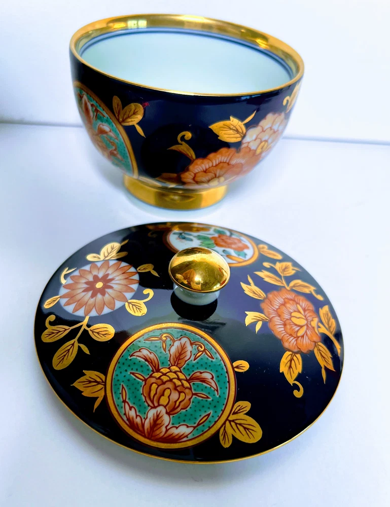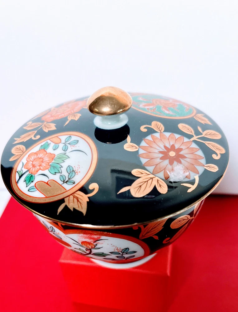 ARITA Black & Gold Floral 4 Lidded Porcelain . .Size 3.4" x 2.5" (H).