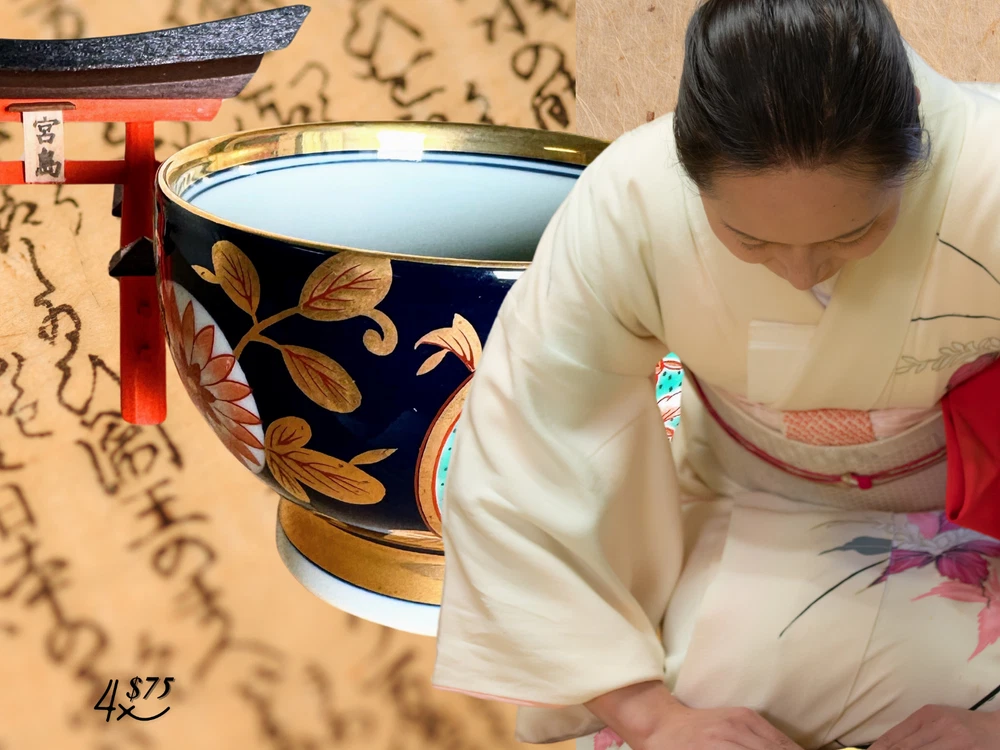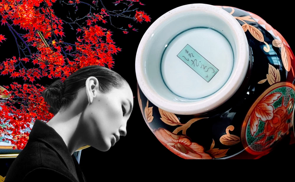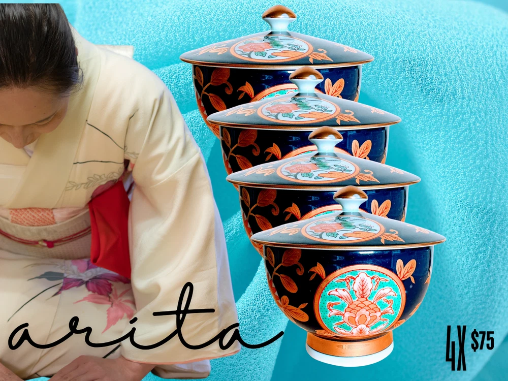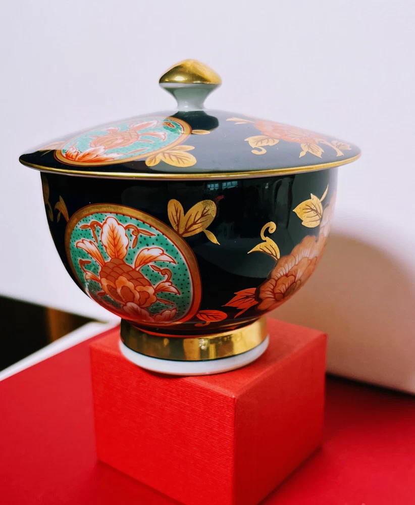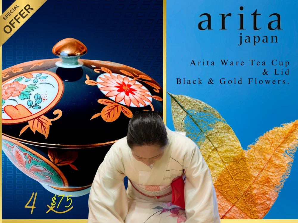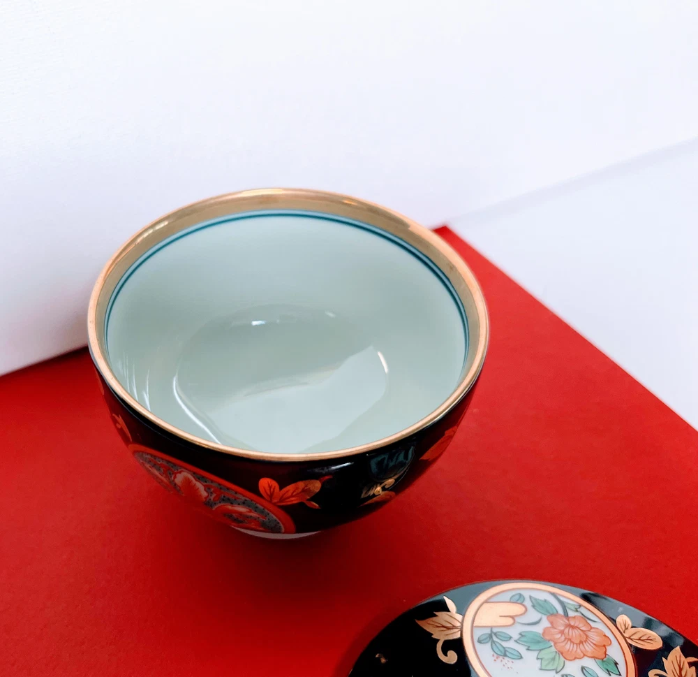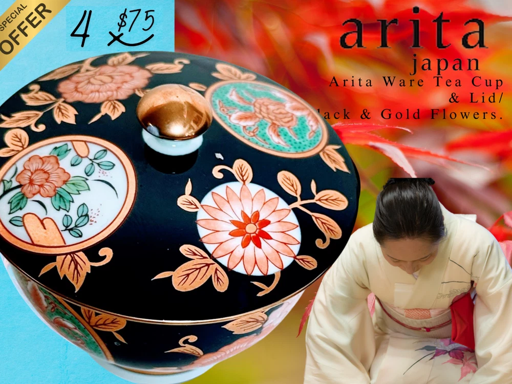 Arita Ware Tea Cup With Lid 4-Piece Set Black and Gold.NEW.